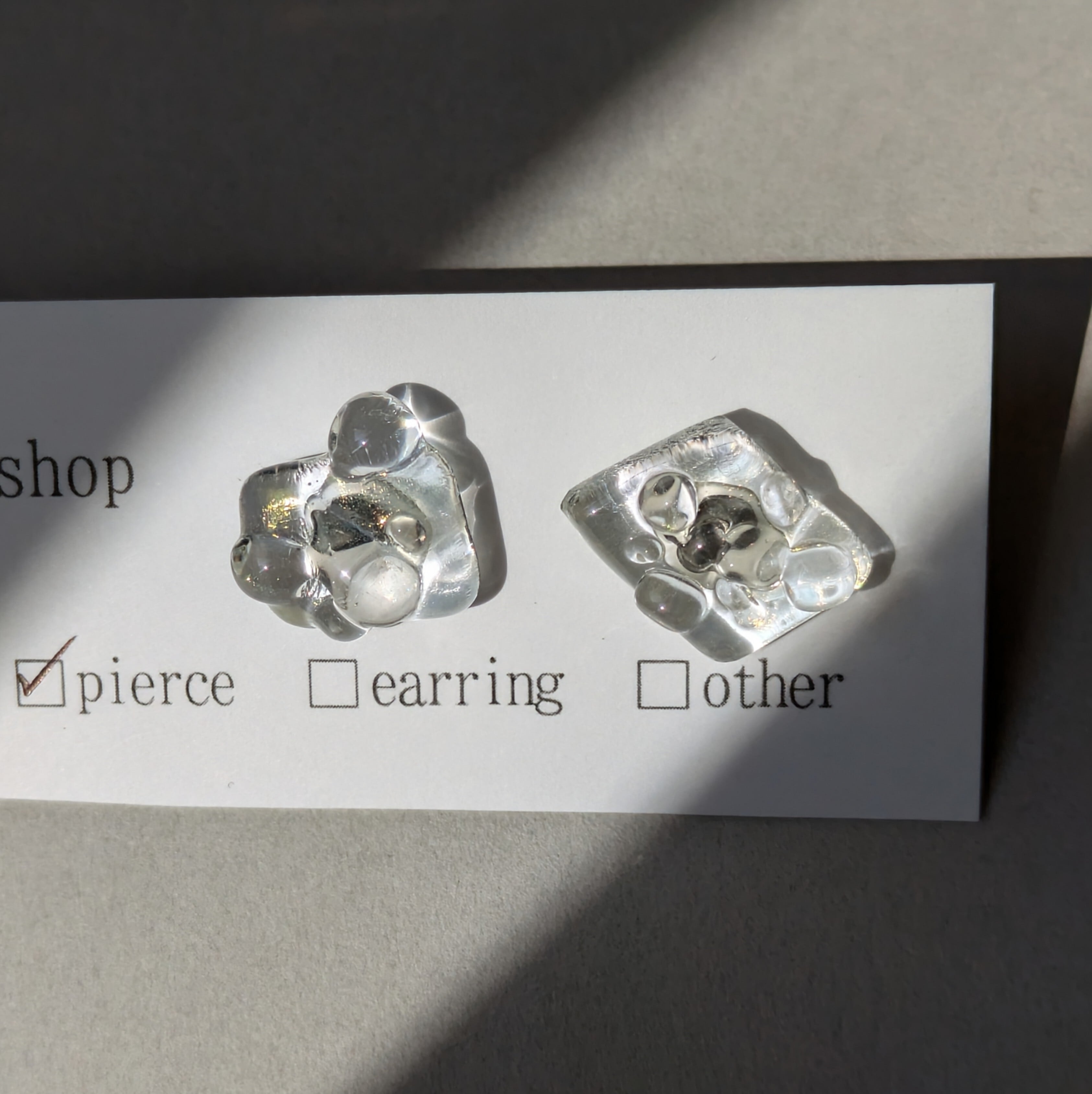 透明な氷の中に光を閉じ込めたこのピアスが、その輝きをそっと引き出す存在になりますように。
