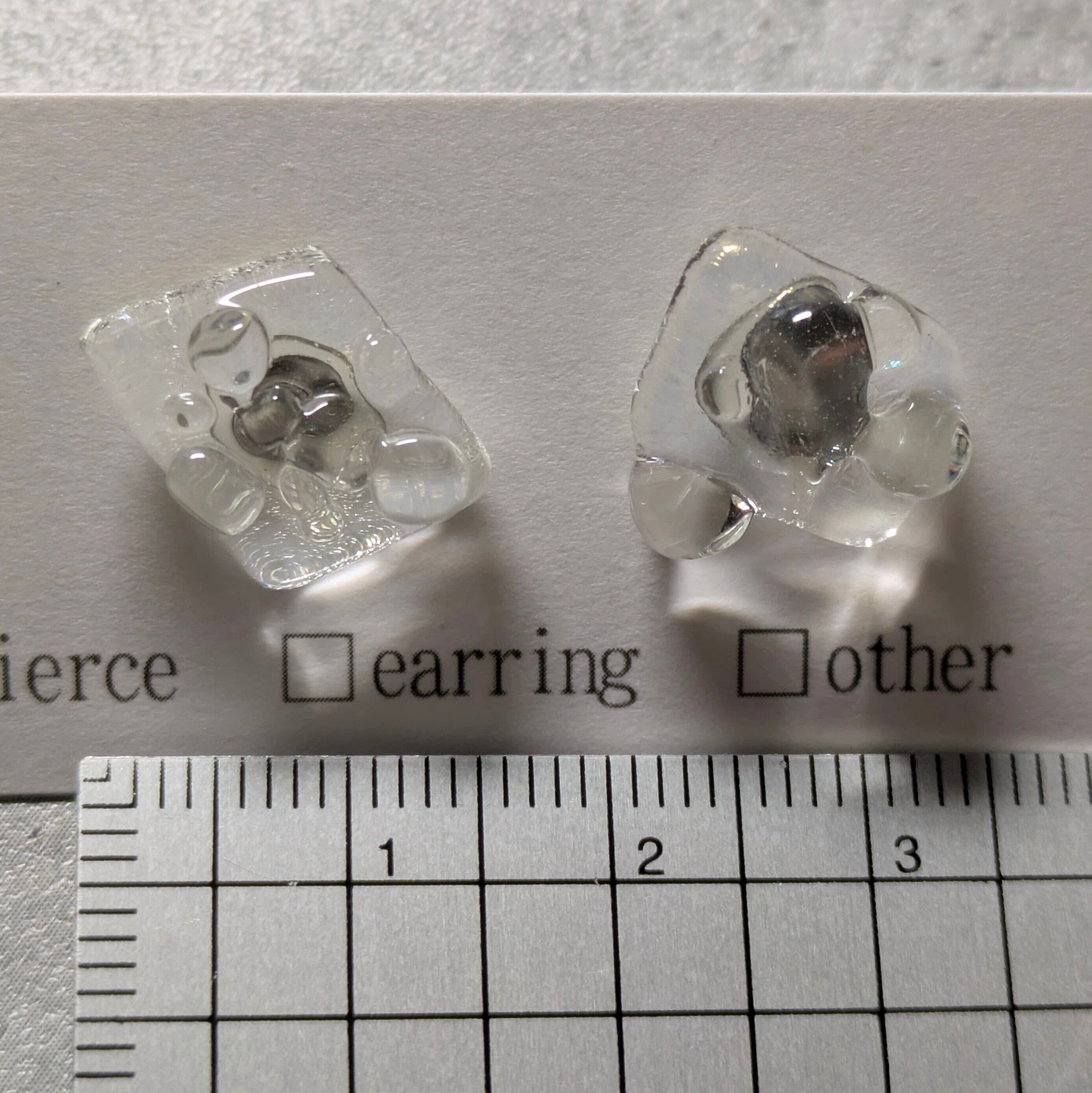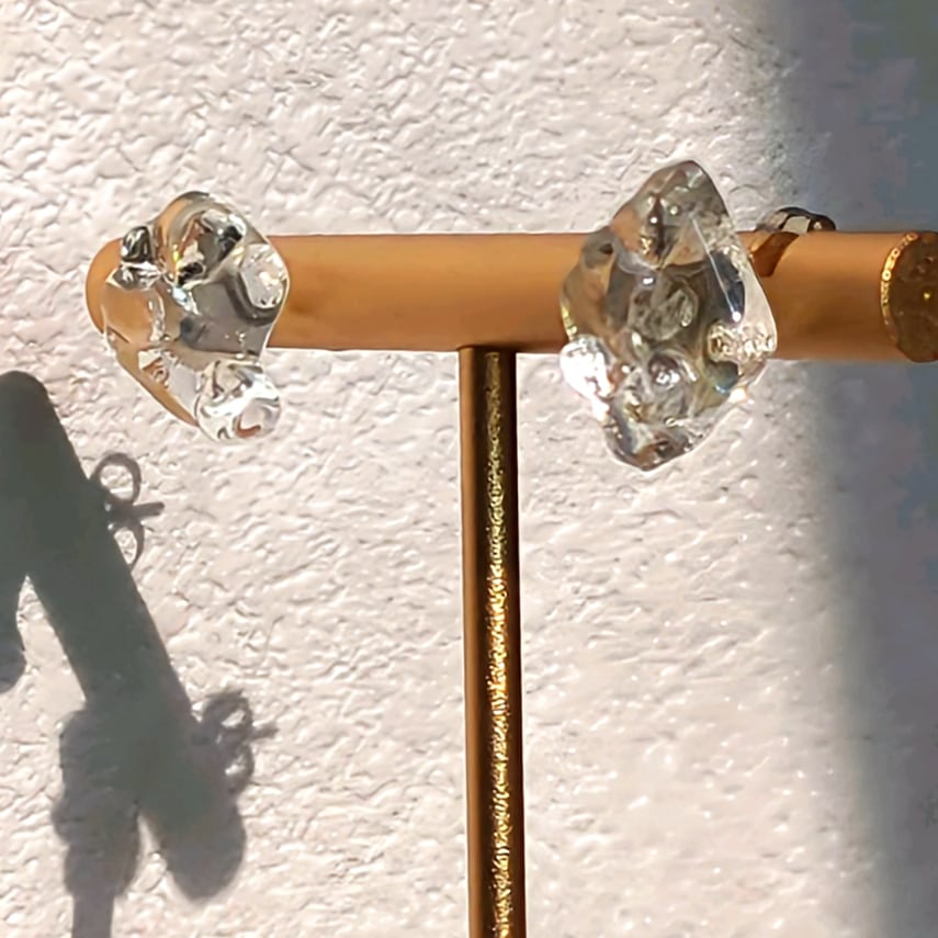冬の静かな空気に映える、氷のようなガラスのピアスです。