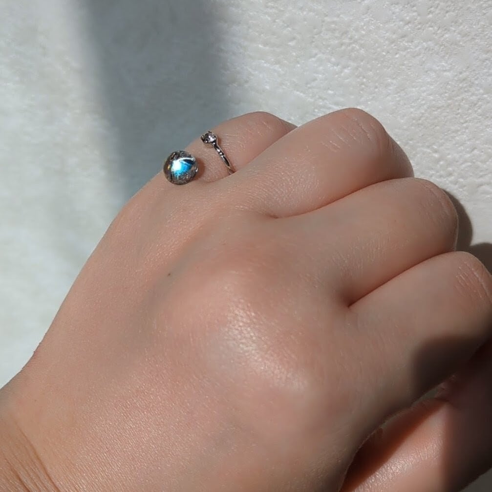 ガッツリと熔かし込んだダイクロとは違い、このリングは「静かな光」を大切にしました。