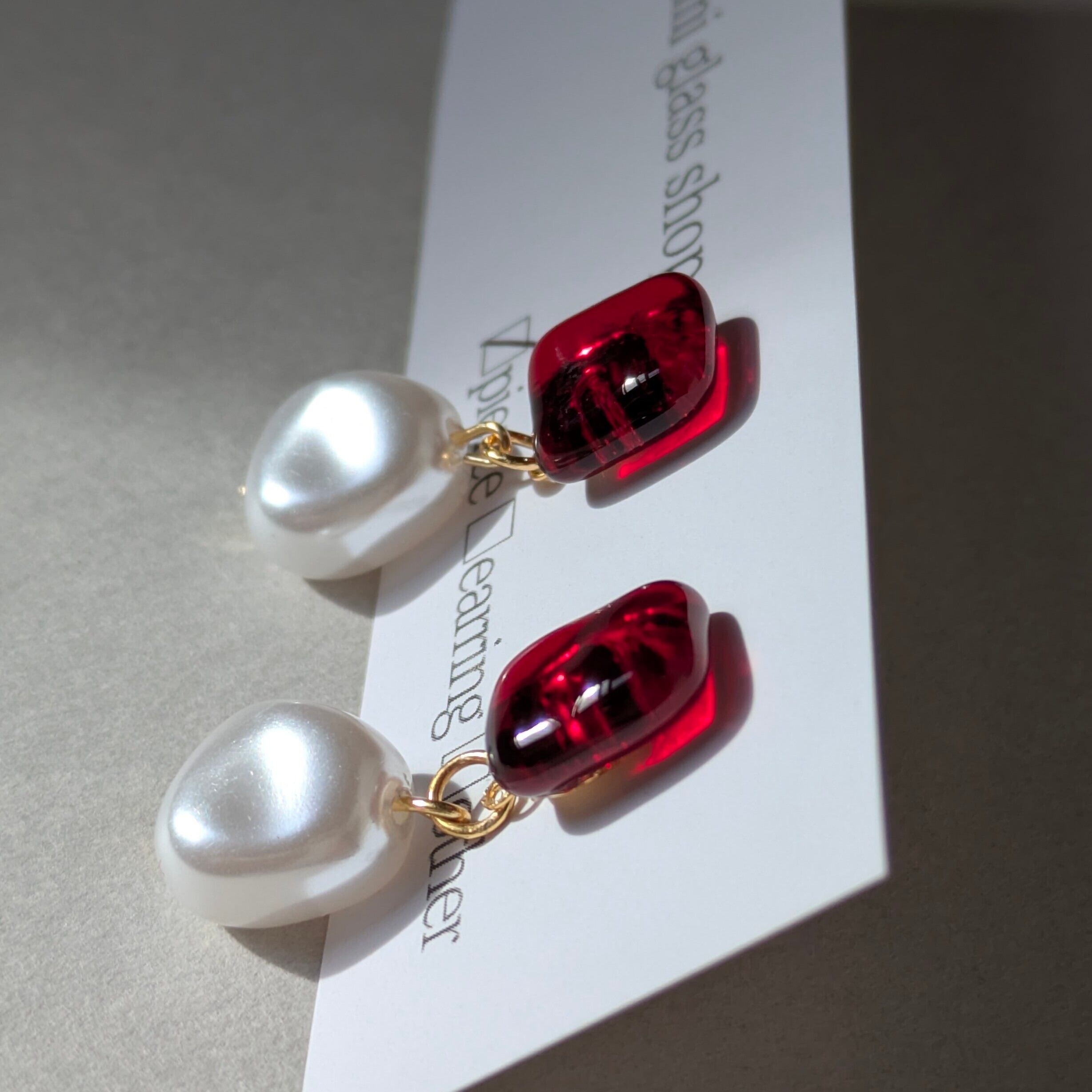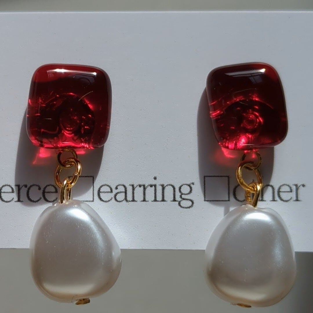 K様専用出品 ルビーレッド×パールピアス