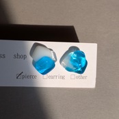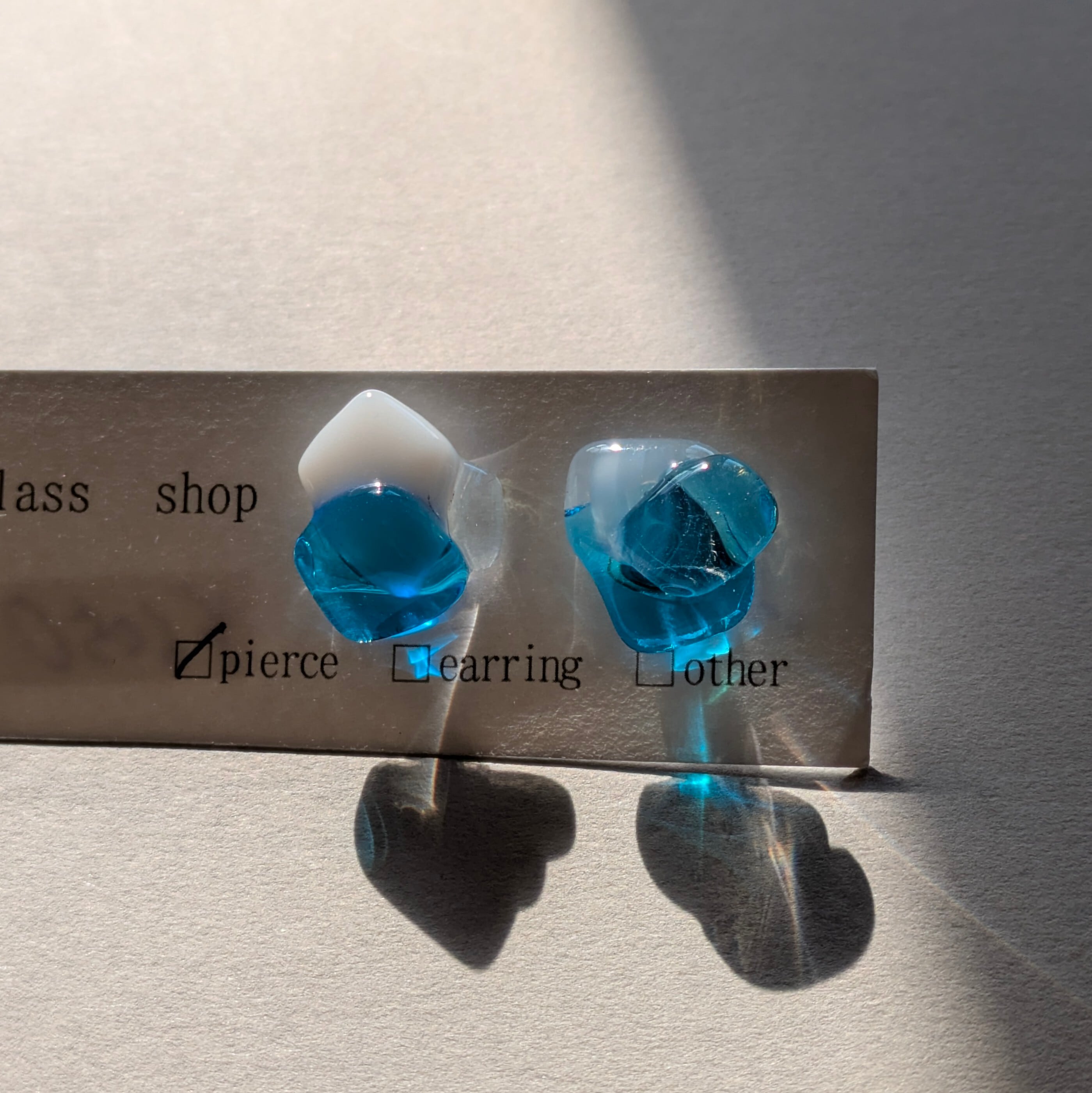 白と青の欠片|ホワイト×アクアブルー×オーロラガラスのピアス