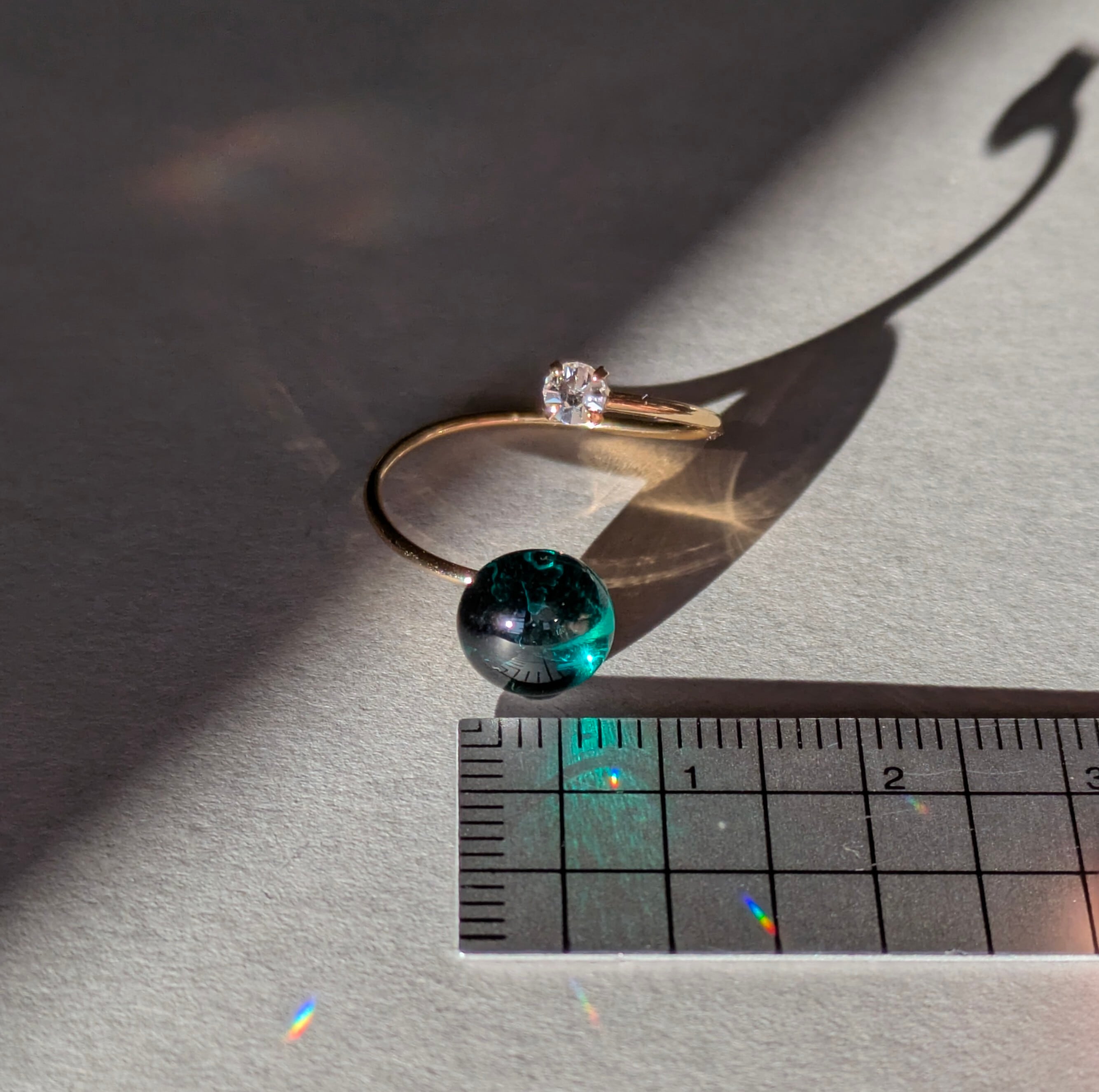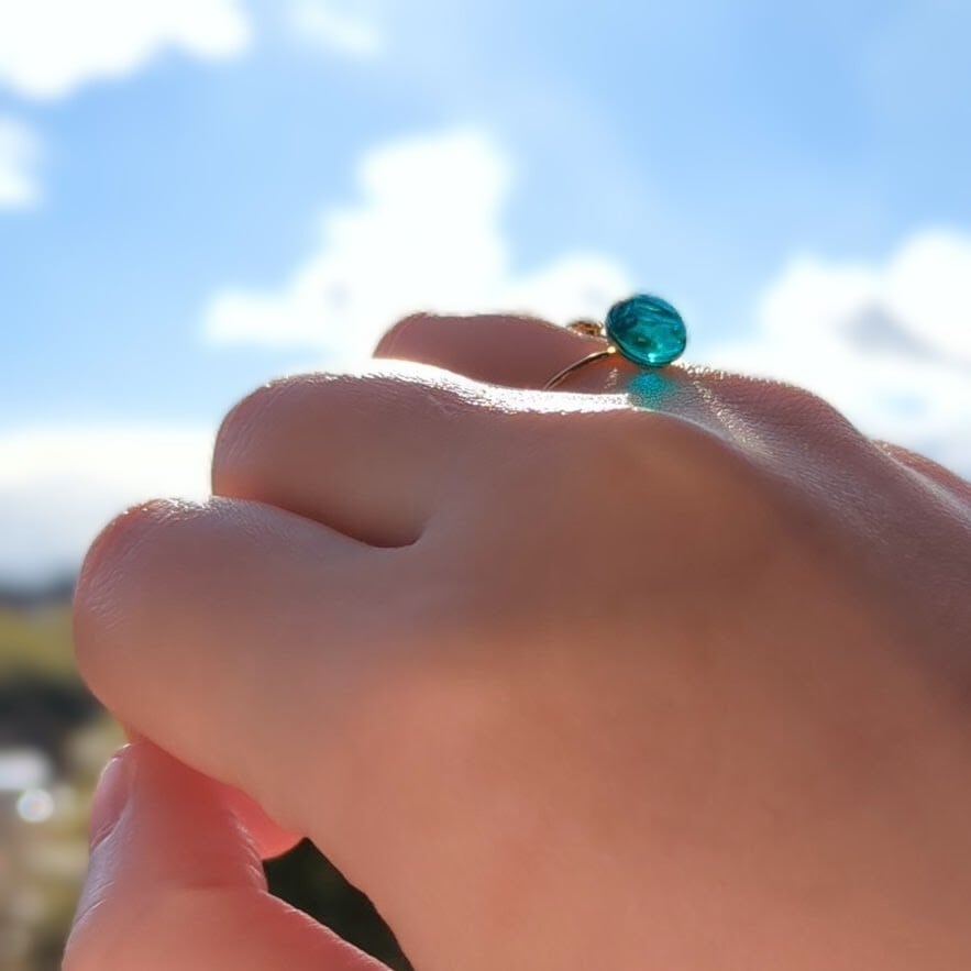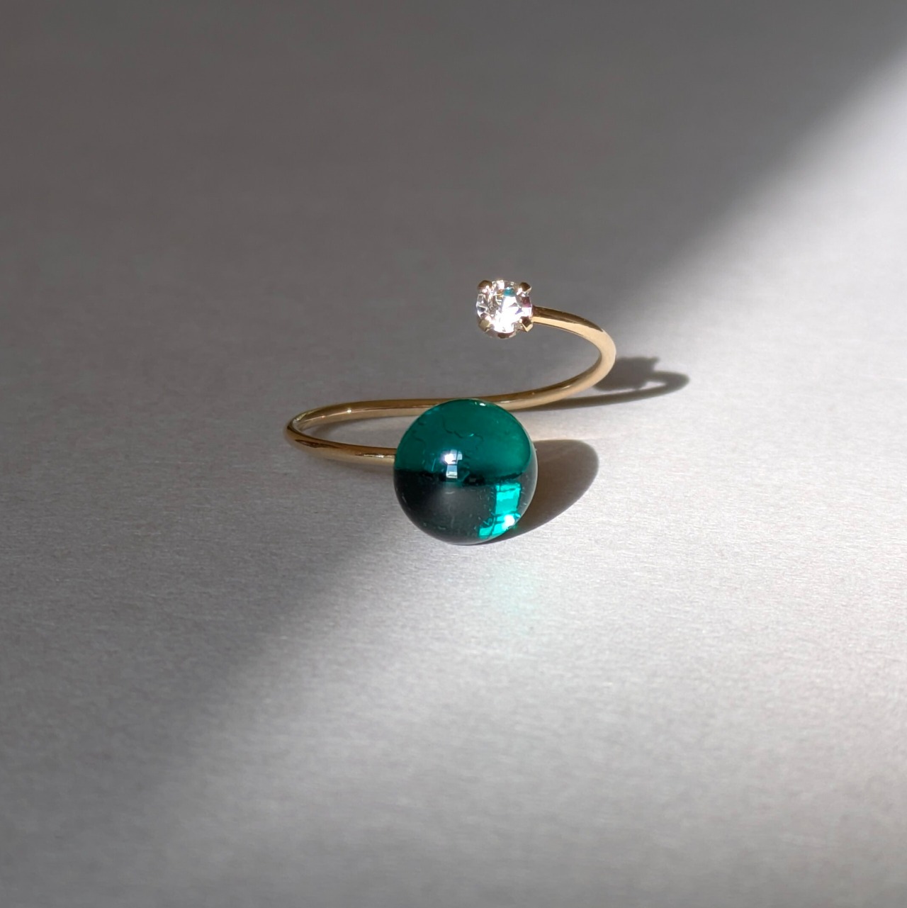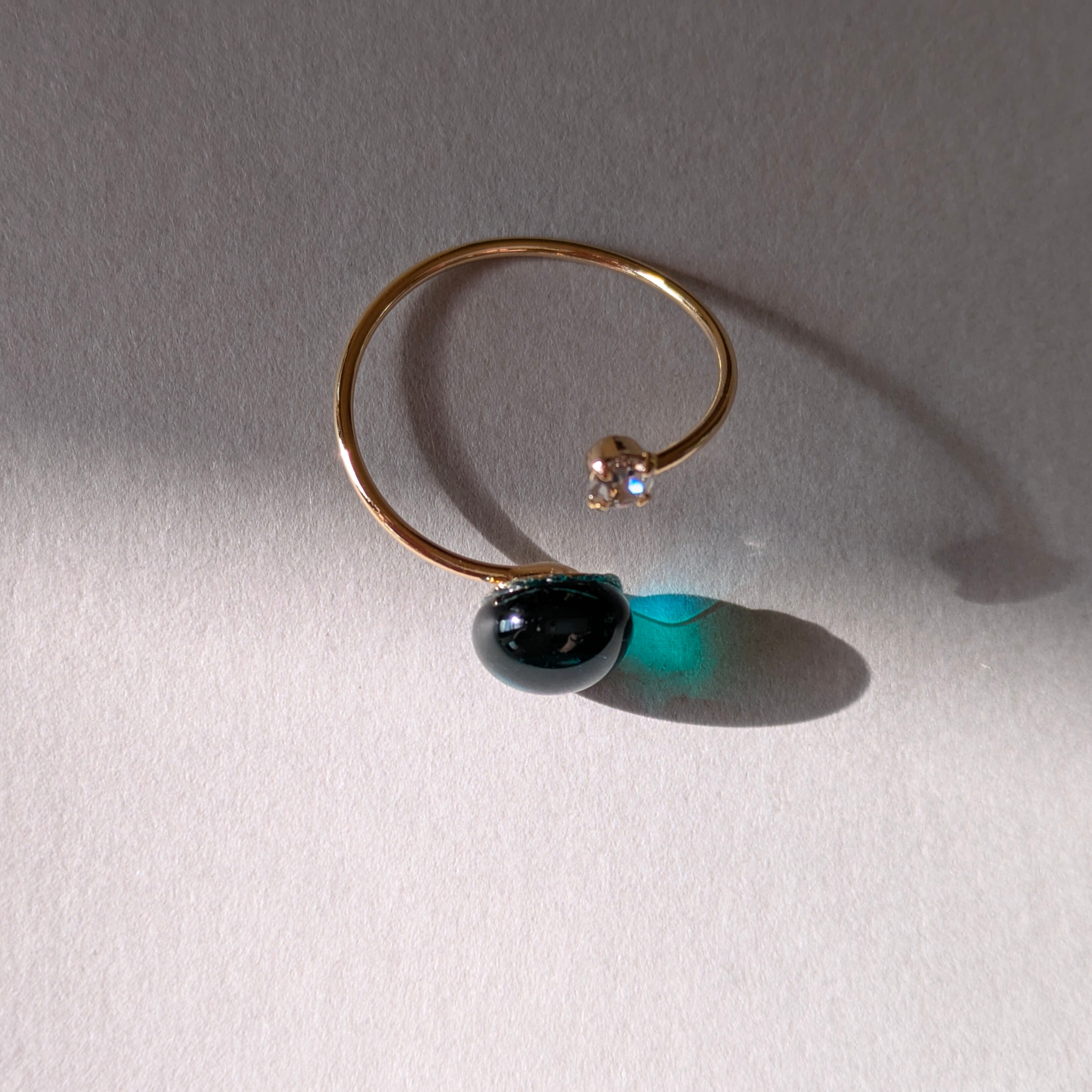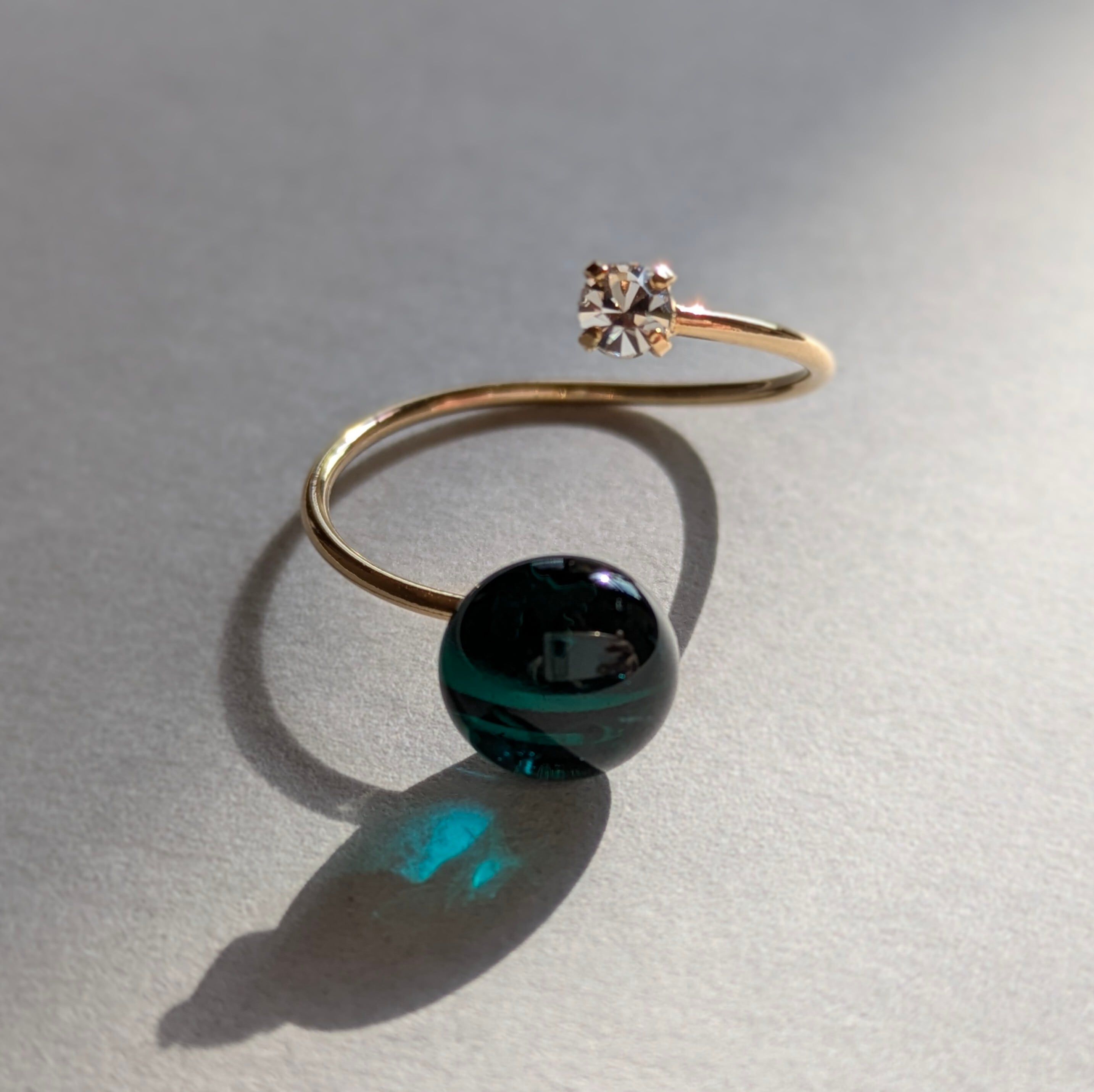深緑|エメラルドグリーンガラスのフォークリング