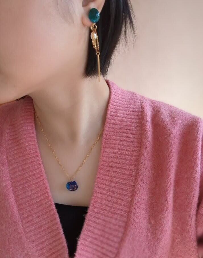 胸元で揺れる蒼は、外の世界と、自分の内側を分ける静かな「境界線」をイメージしました。