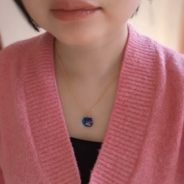 蒼の境界線|アクアブルー×コバルトブルー×オーロラガラスのネックレス