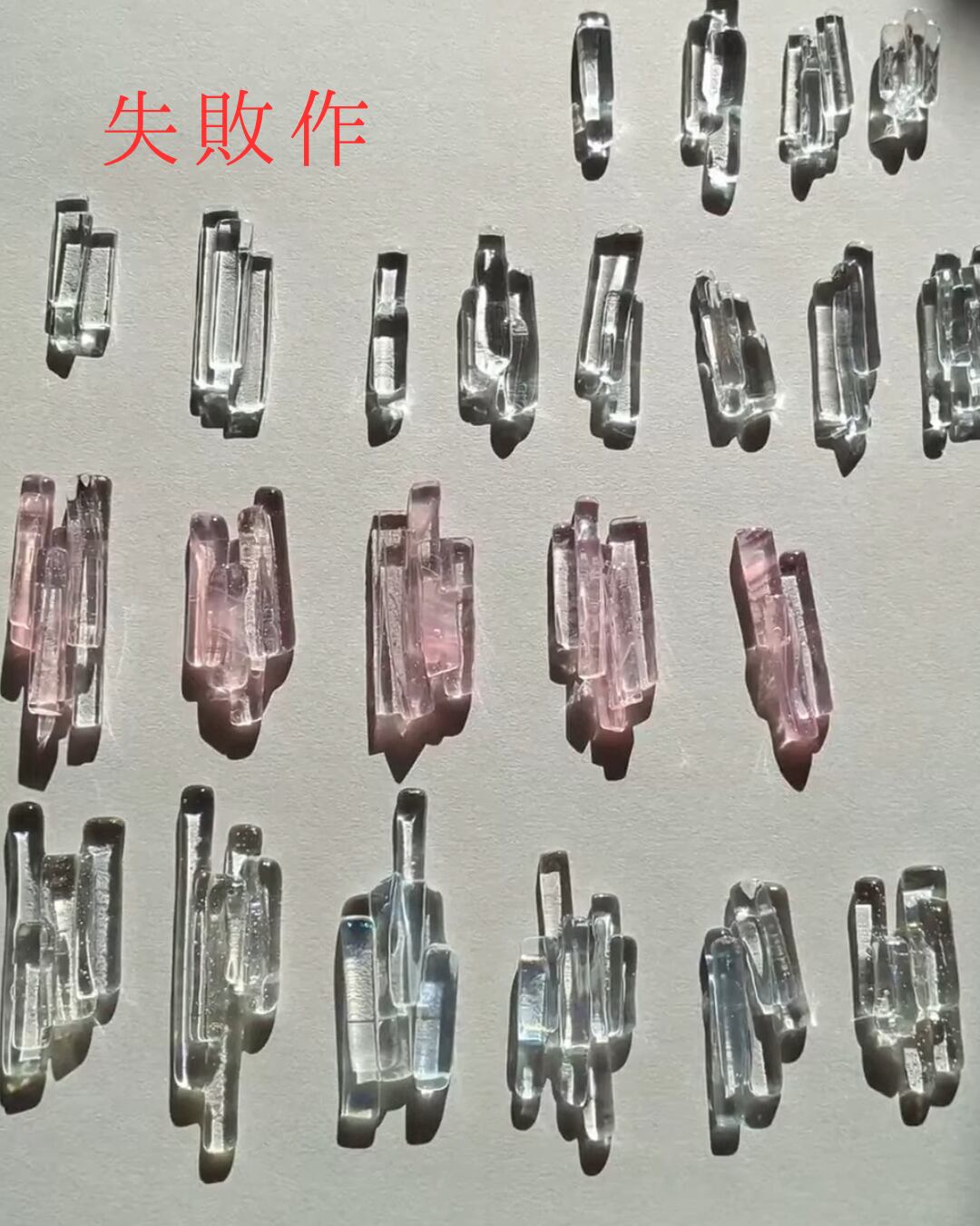 そのため、熔けた後の動きを想像しながら、カットしたガラスの配置を何度も組み直しました。