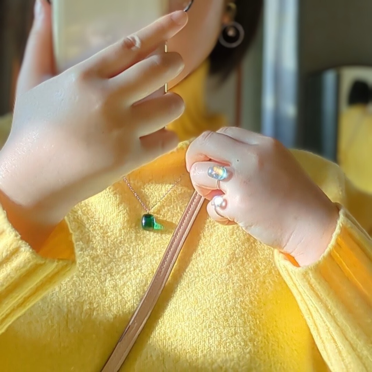 ジュエリーを外したあとは、しまう前に柔らかい布でやさしく拭いてください。