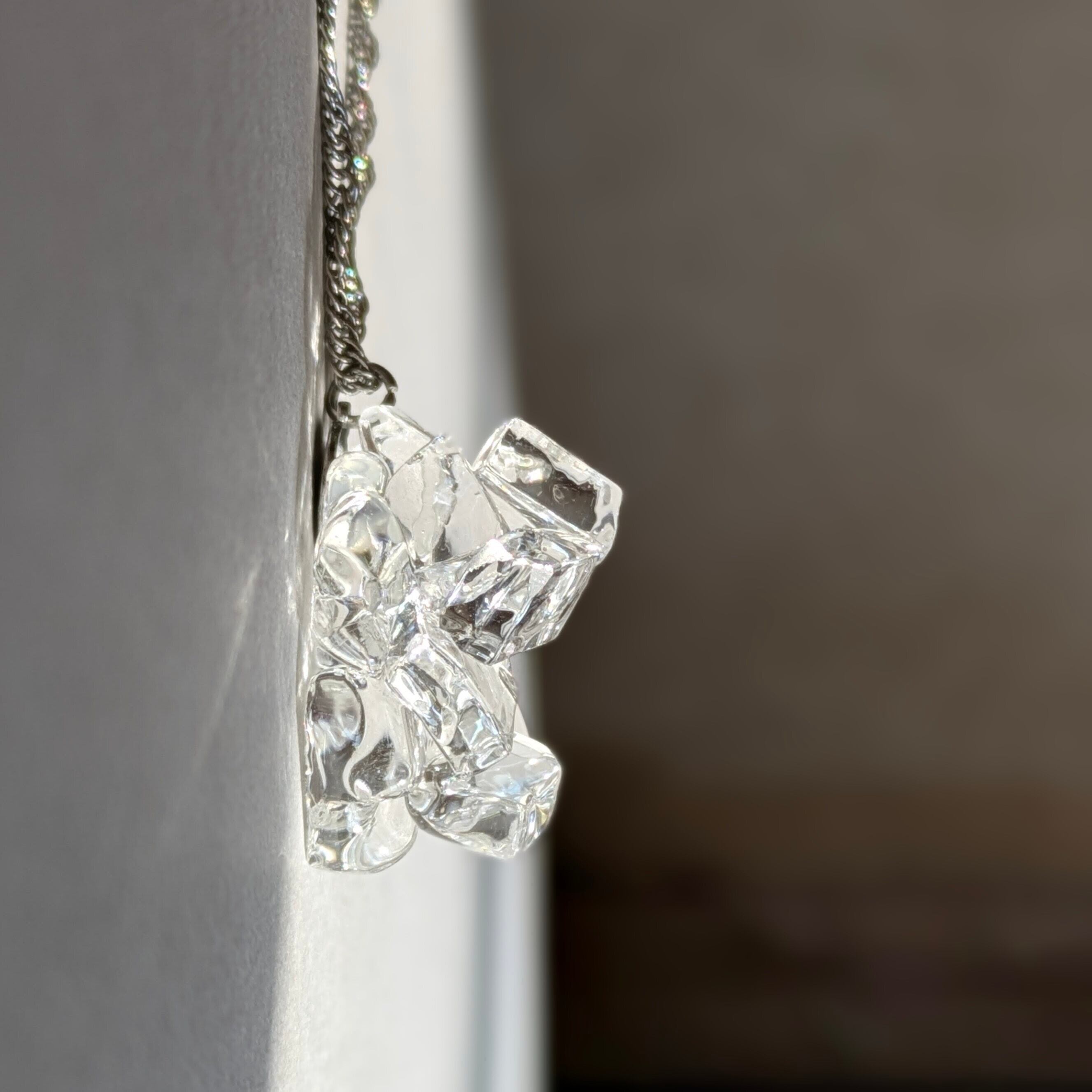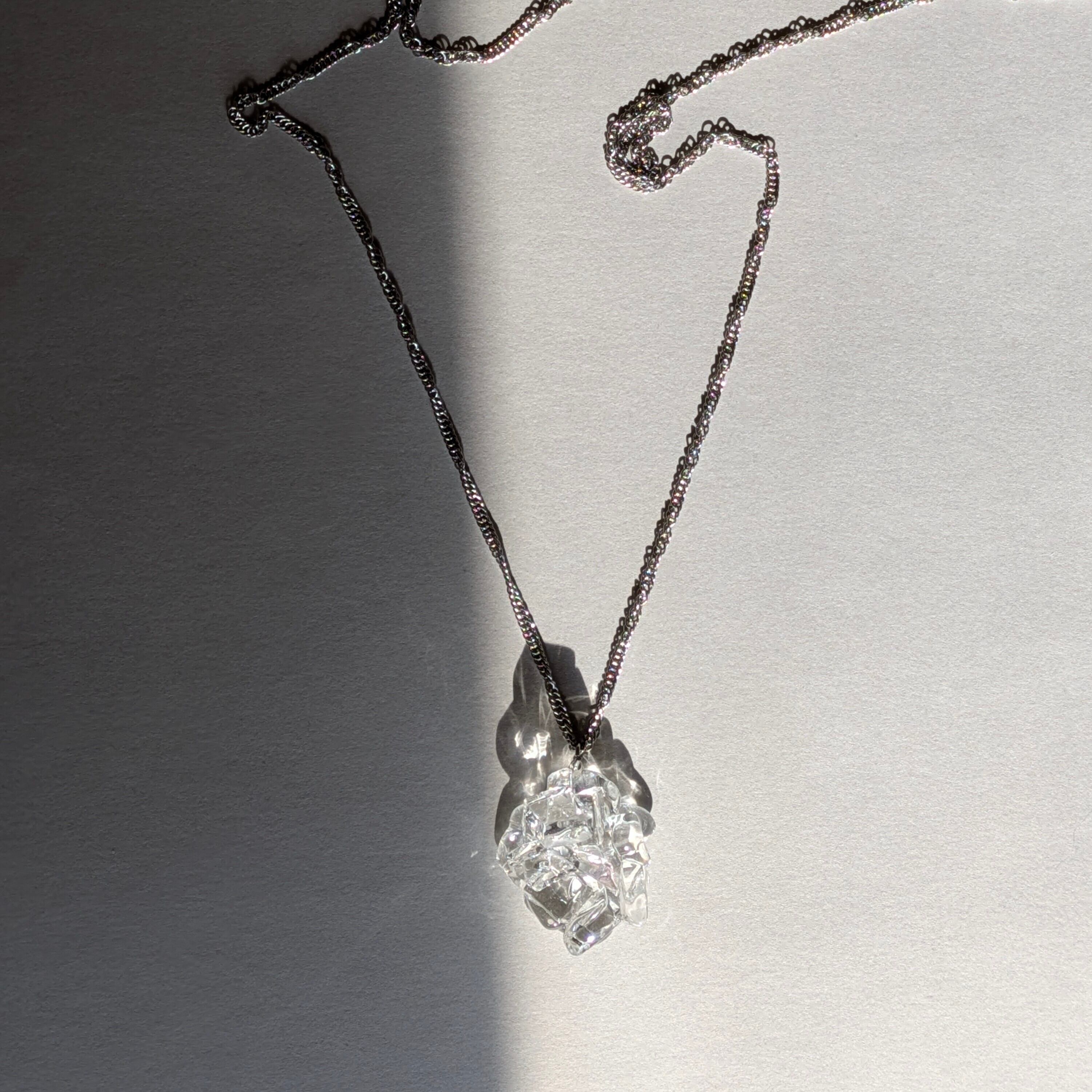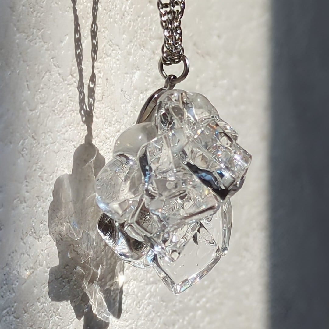 氷が割れた一瞬のような、不完全で、でも強い透明感を持つネックレスです。