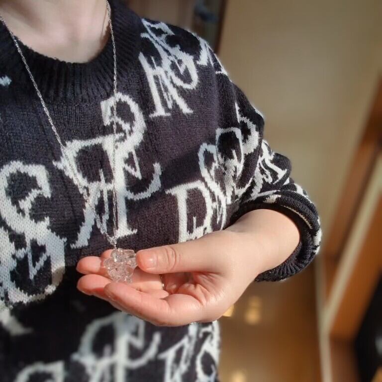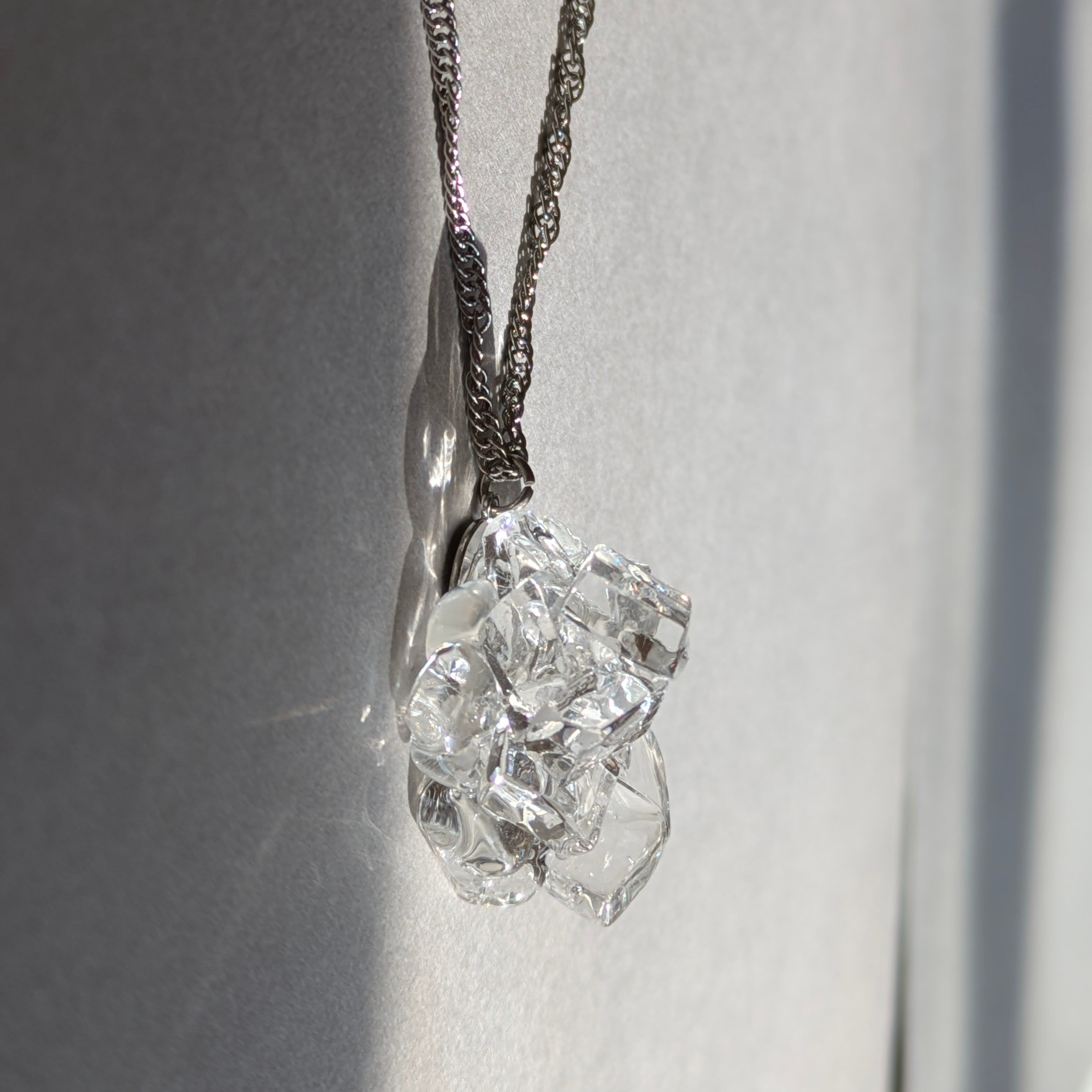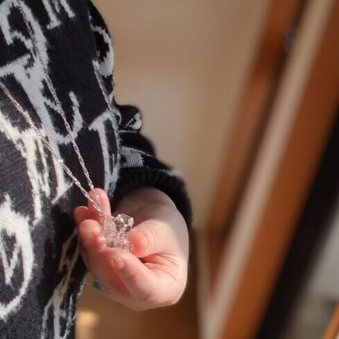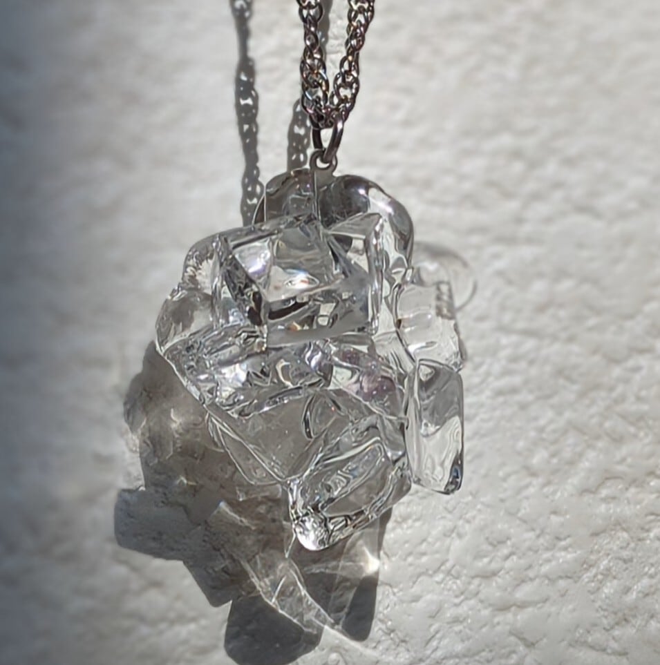 氷が割れた一瞬のような、不完全で、でも強い透明感を持つネックレスです。