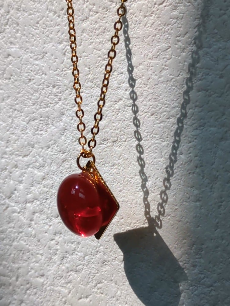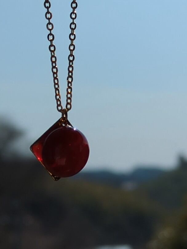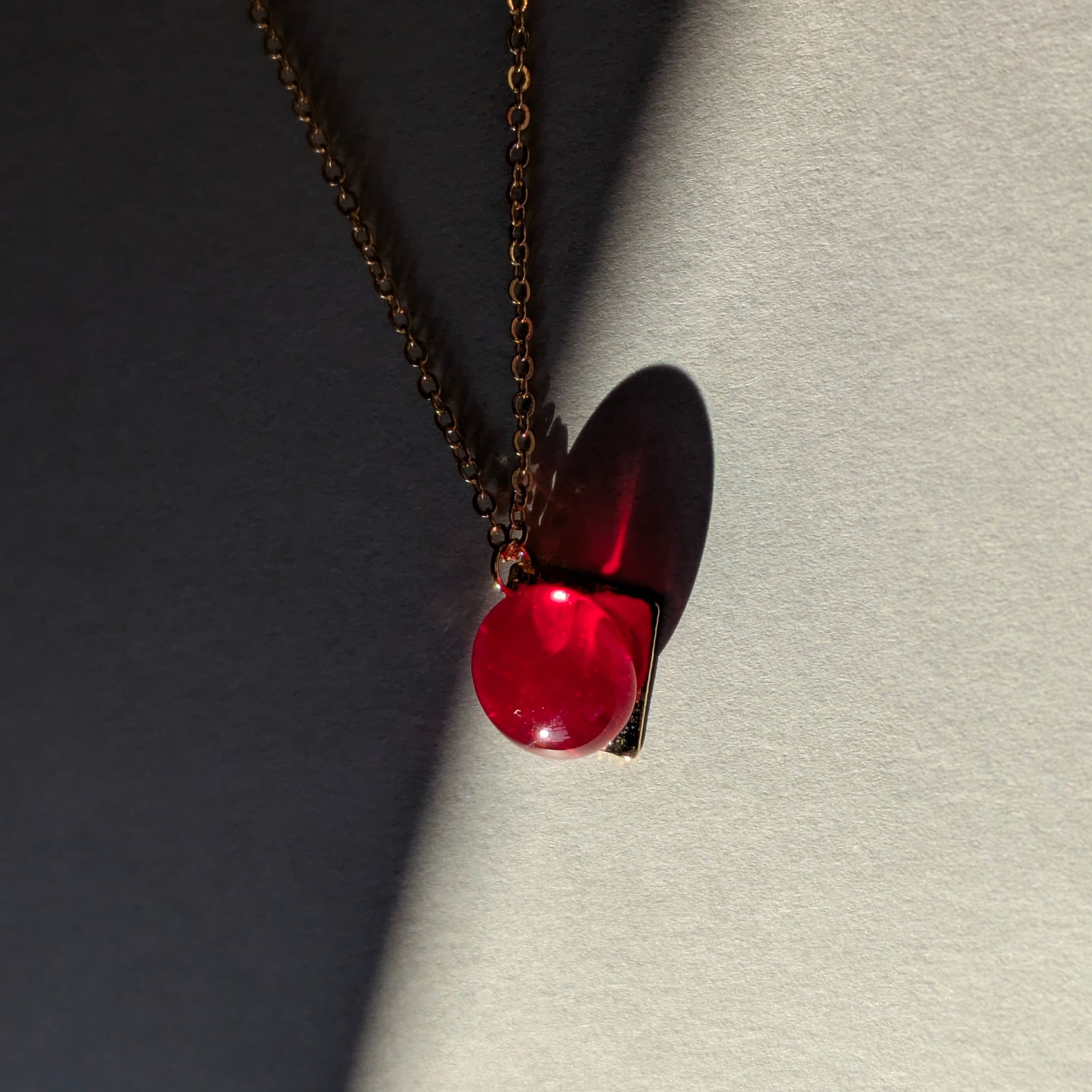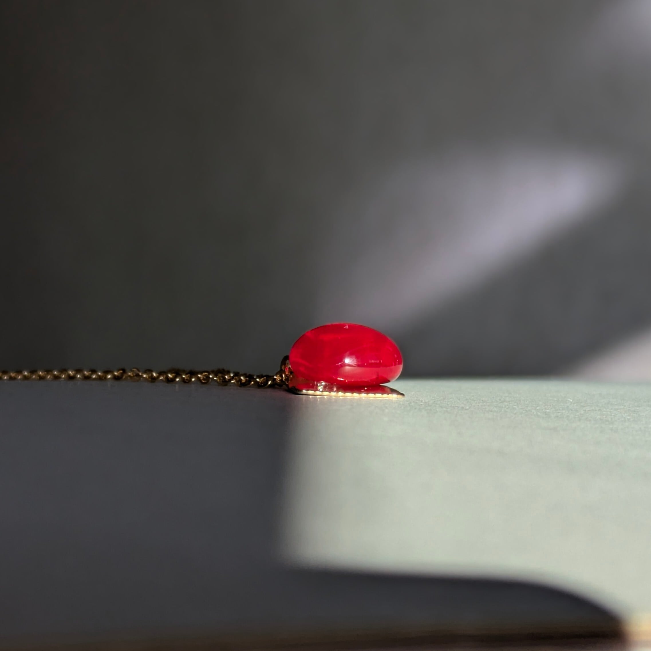 このネックレスは、静かな存在感で気持ちに寄り添う赤として作りました。