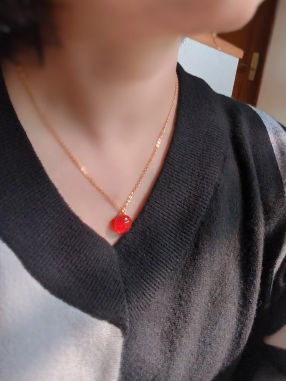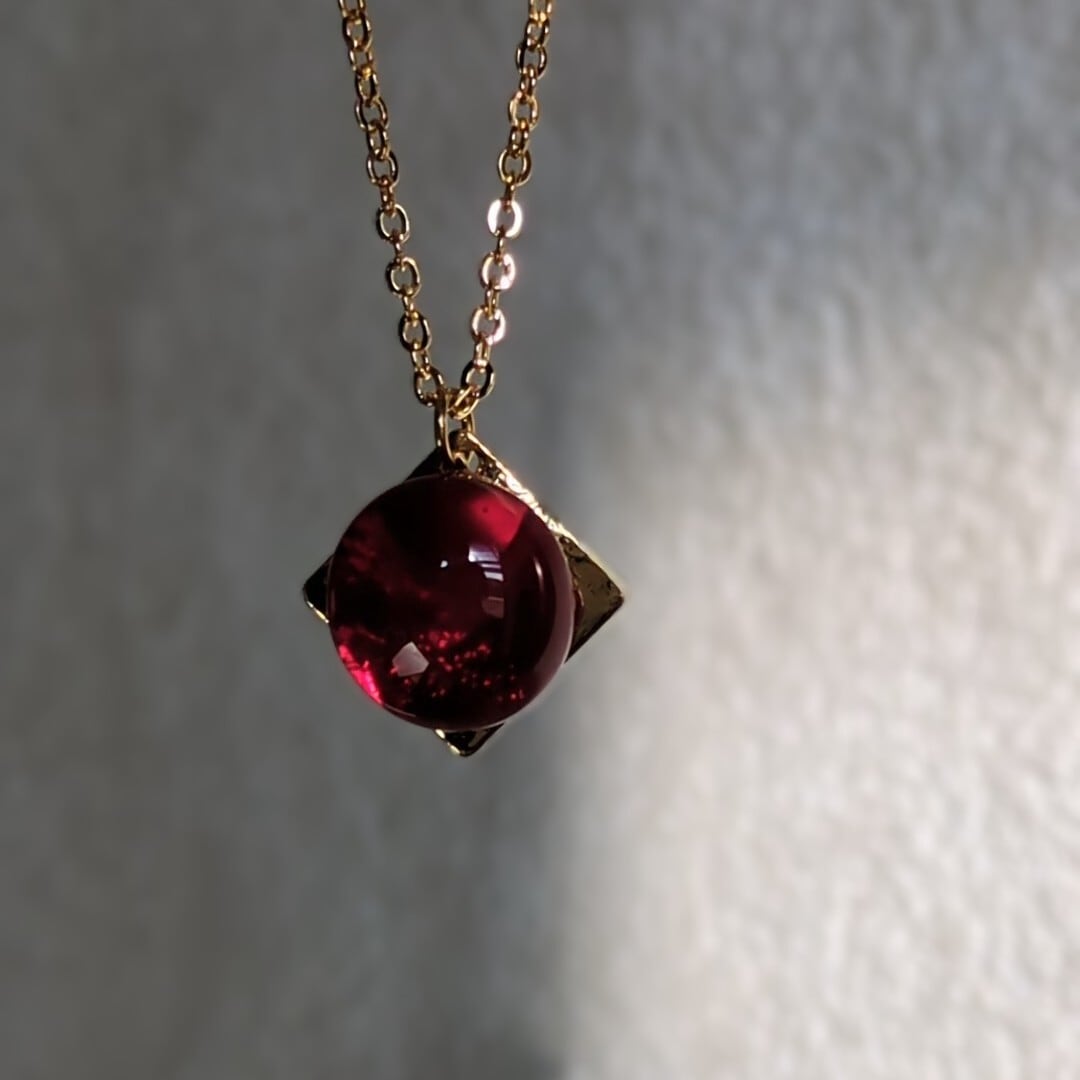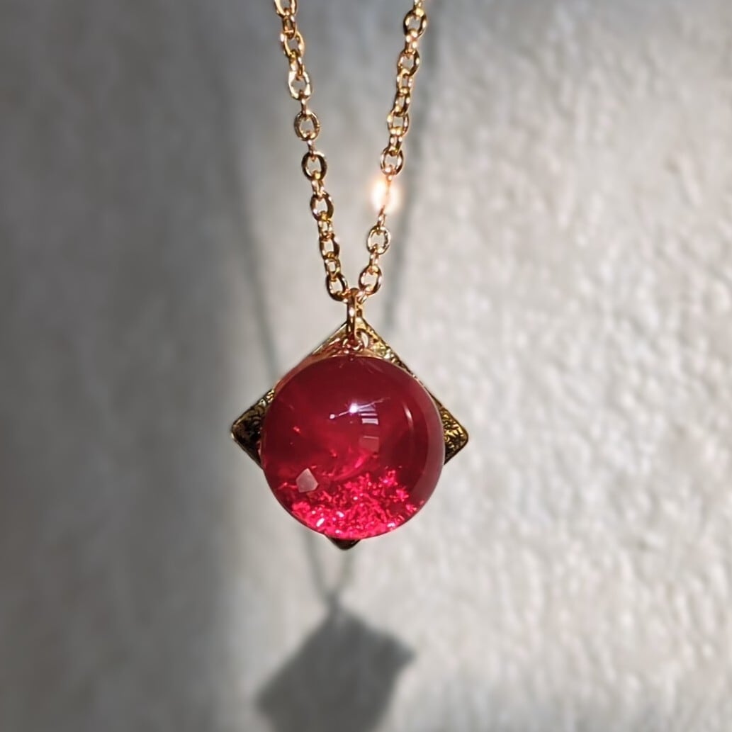 このネックレスは、静かな存在感で気持ちに寄り添う赤として作りました。