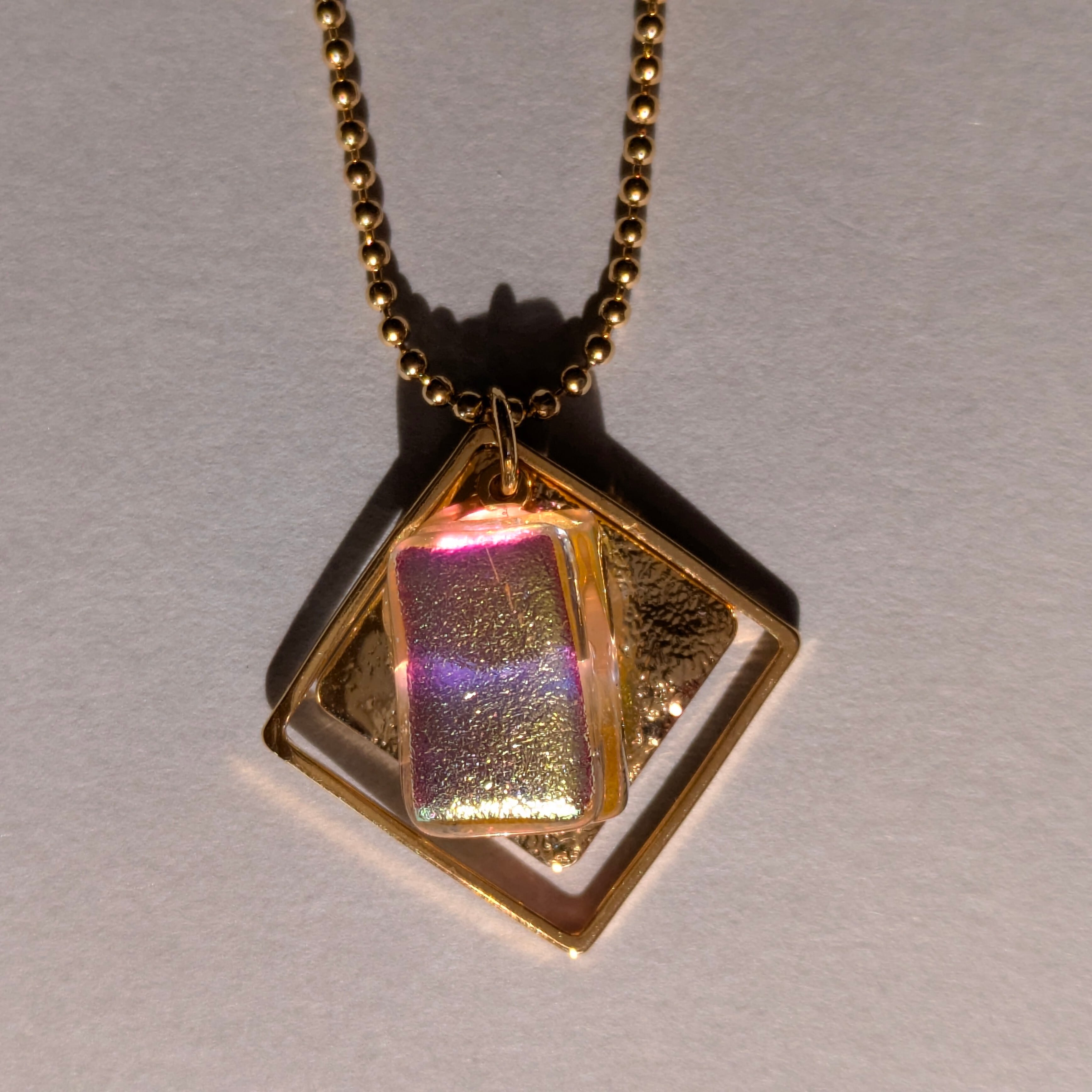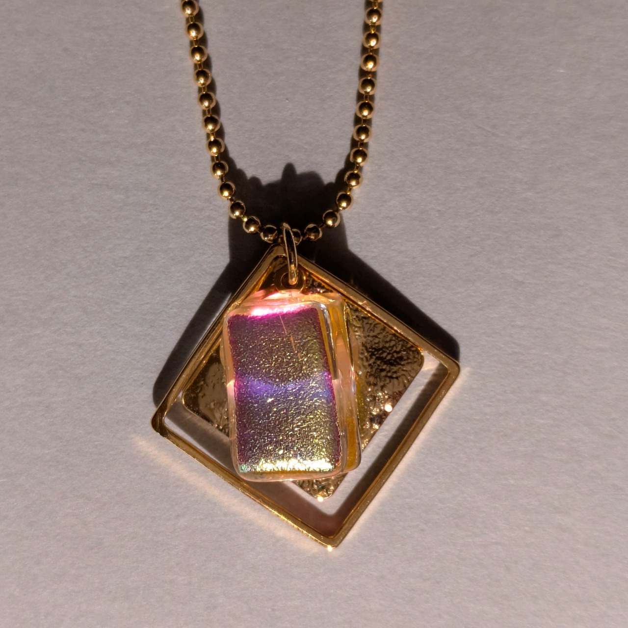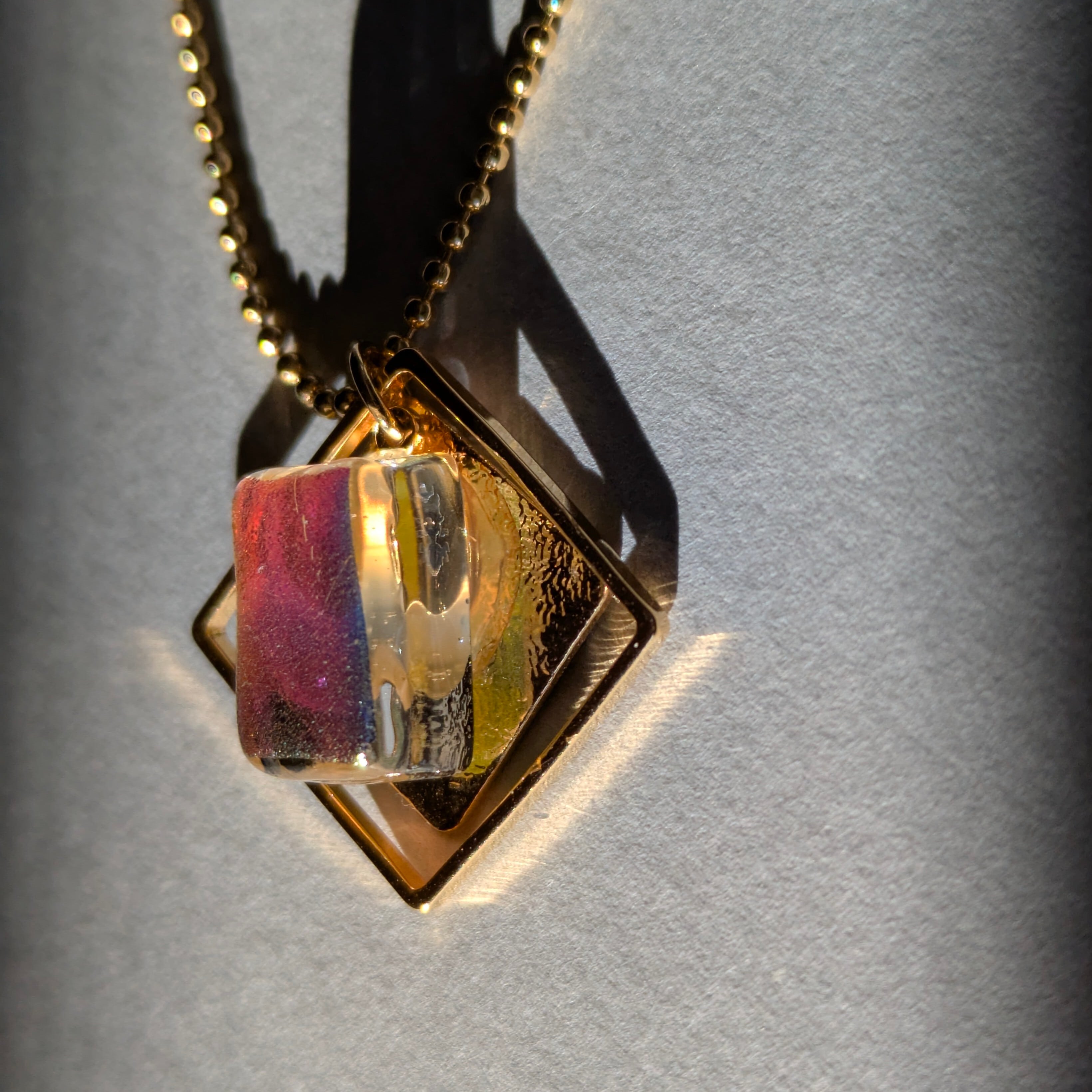 ②虹灯(にじび)|ダイクロ×クリアガラスのネックレス