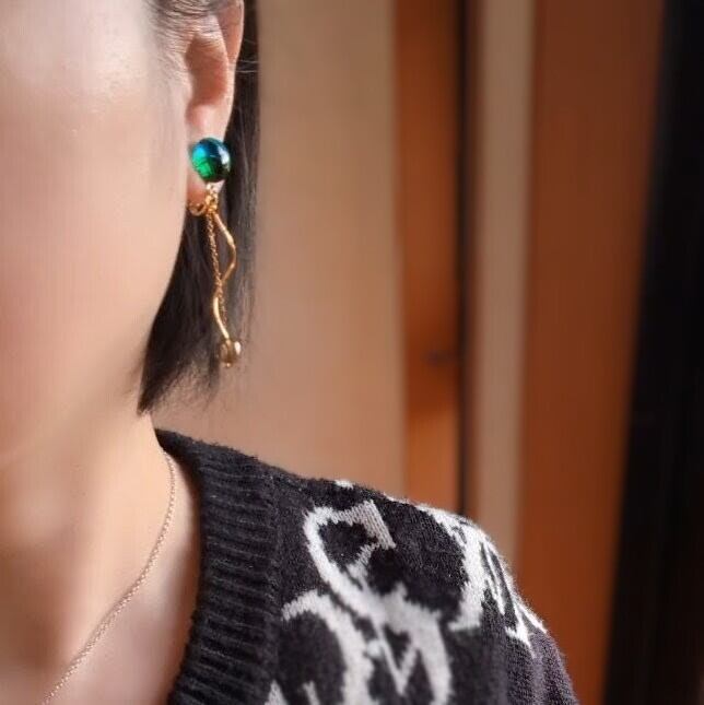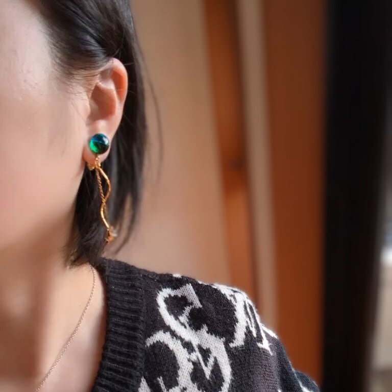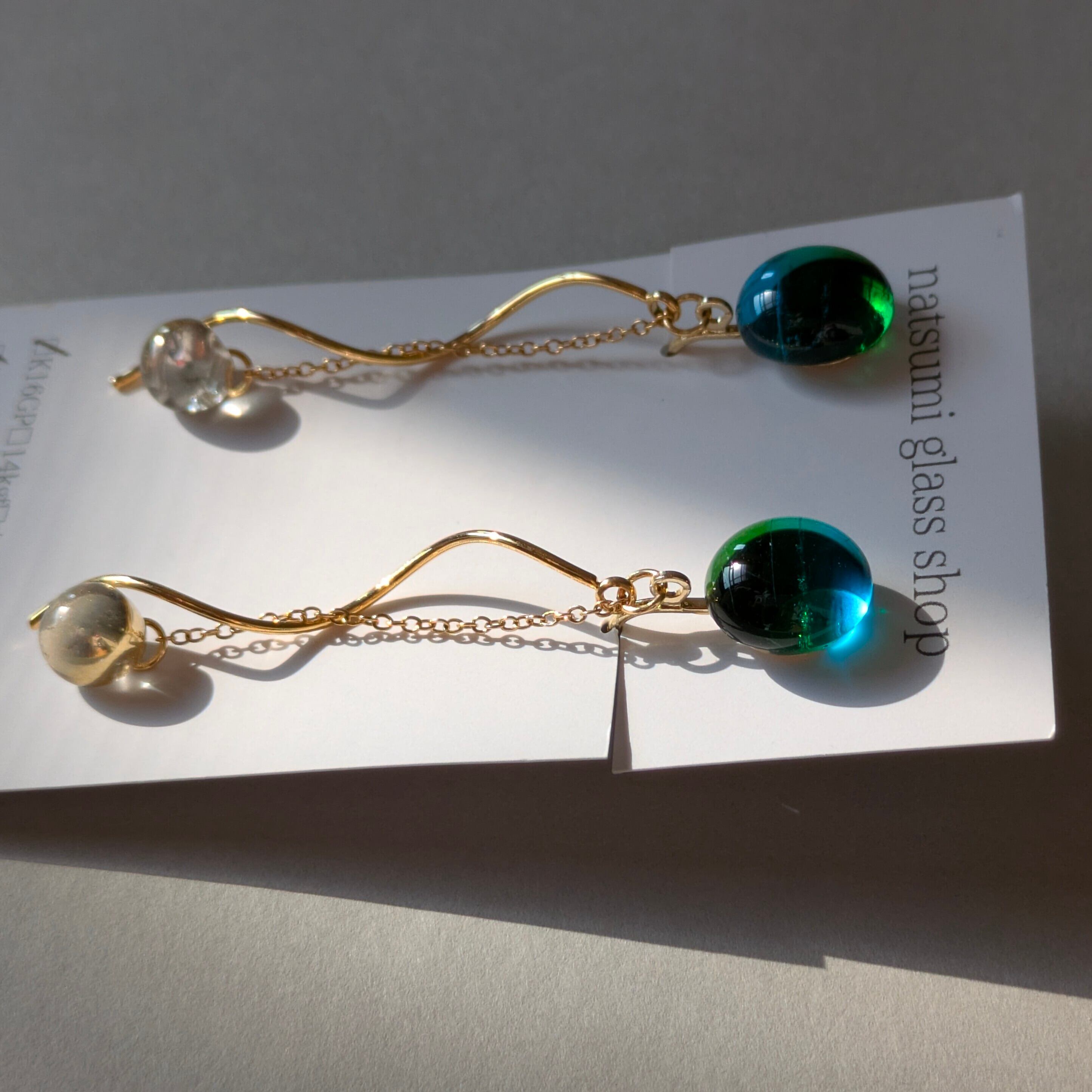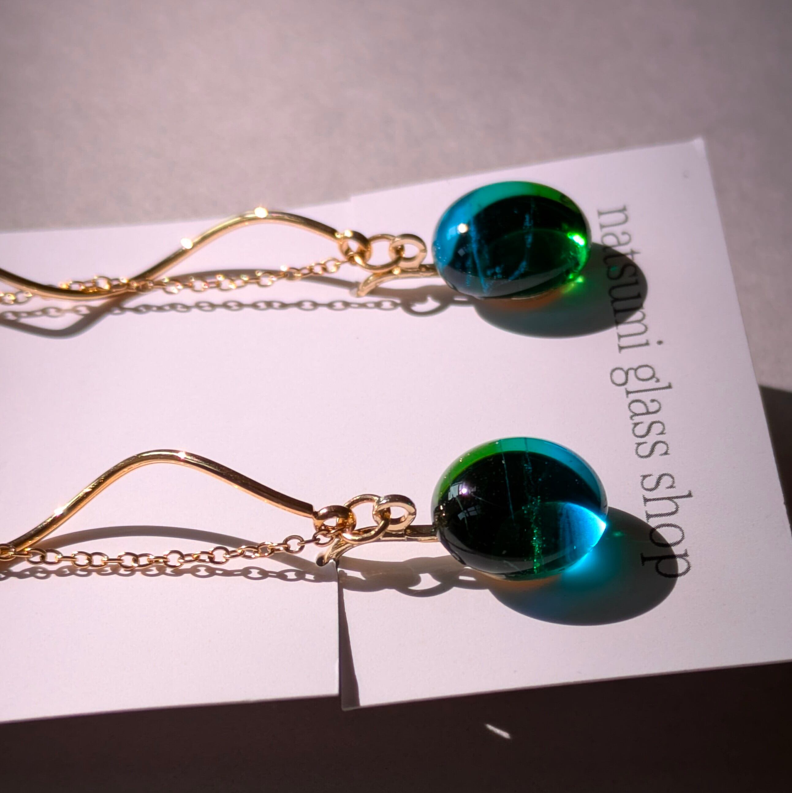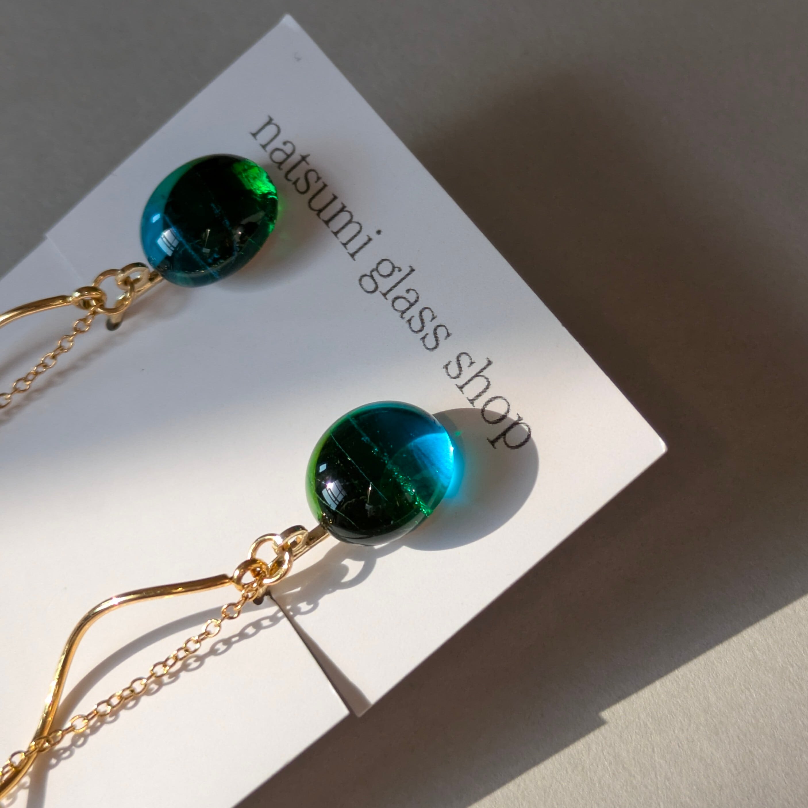森と空のあいだ|グリーン×ライトターコイズブルーガラスのイヤリング