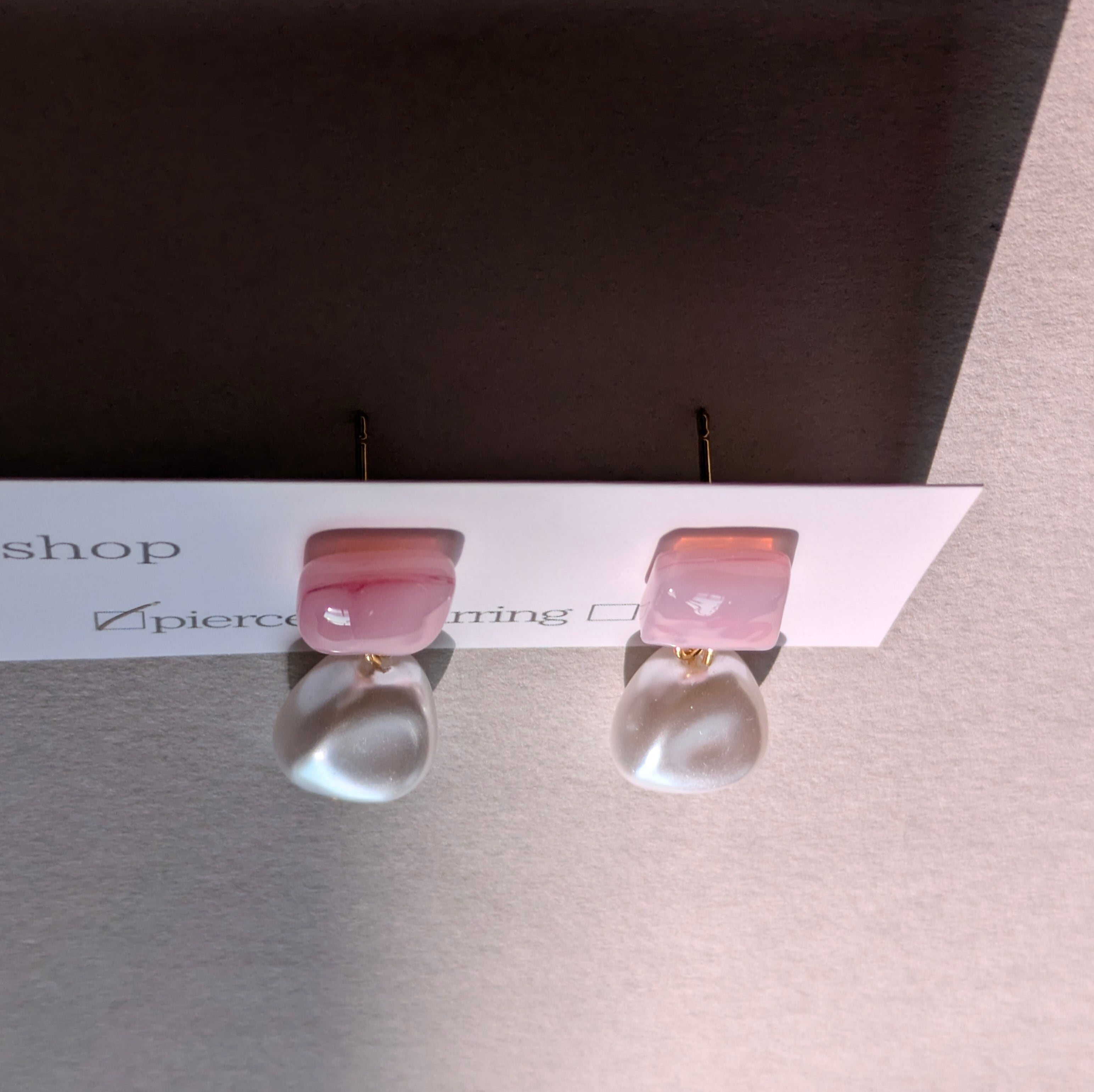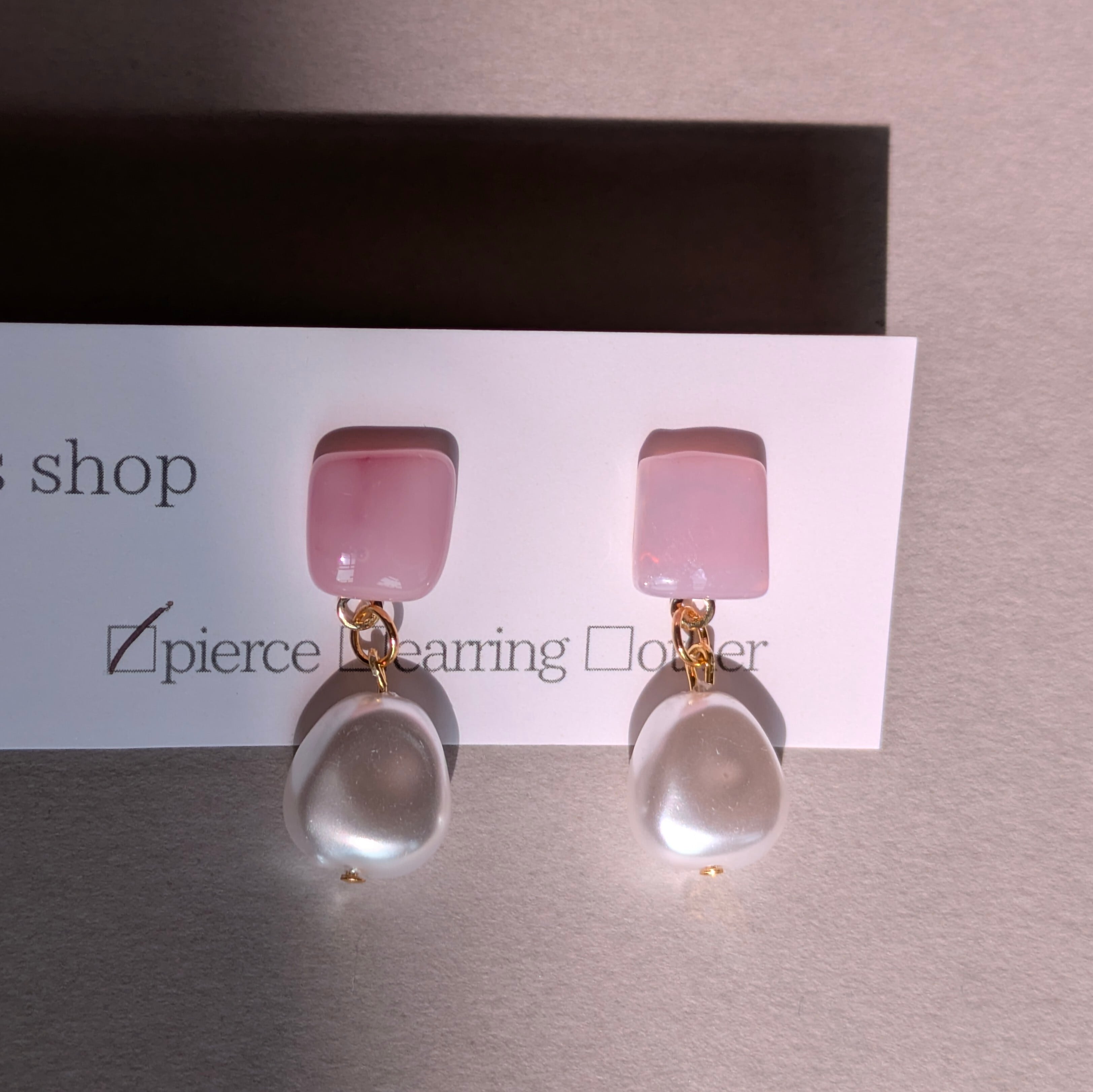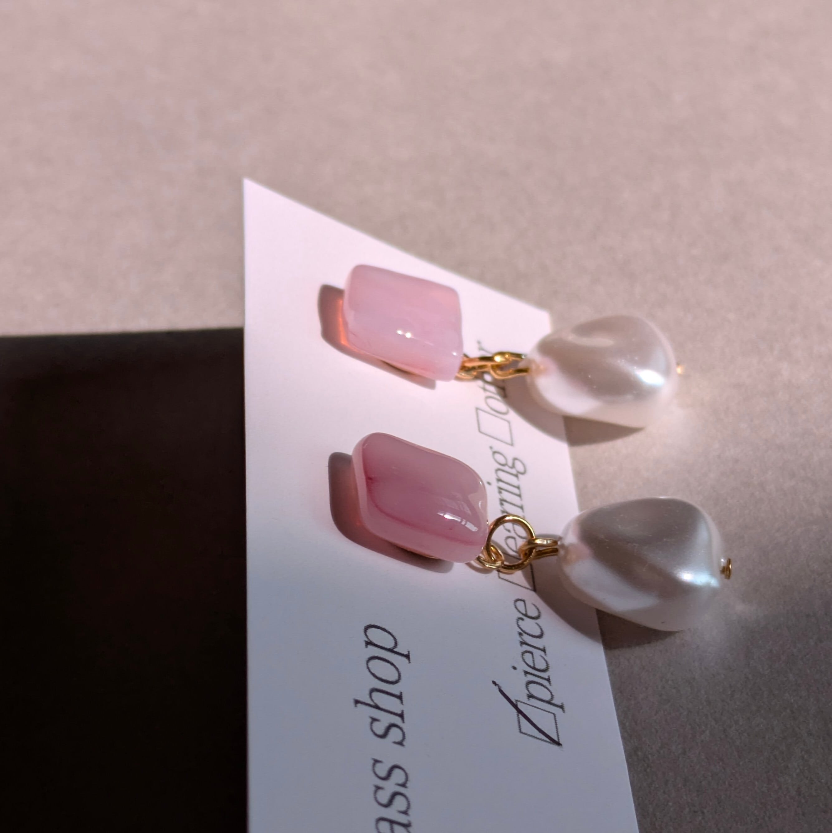 ④春ひとひら|パールつき・ピンクガラスのピアス