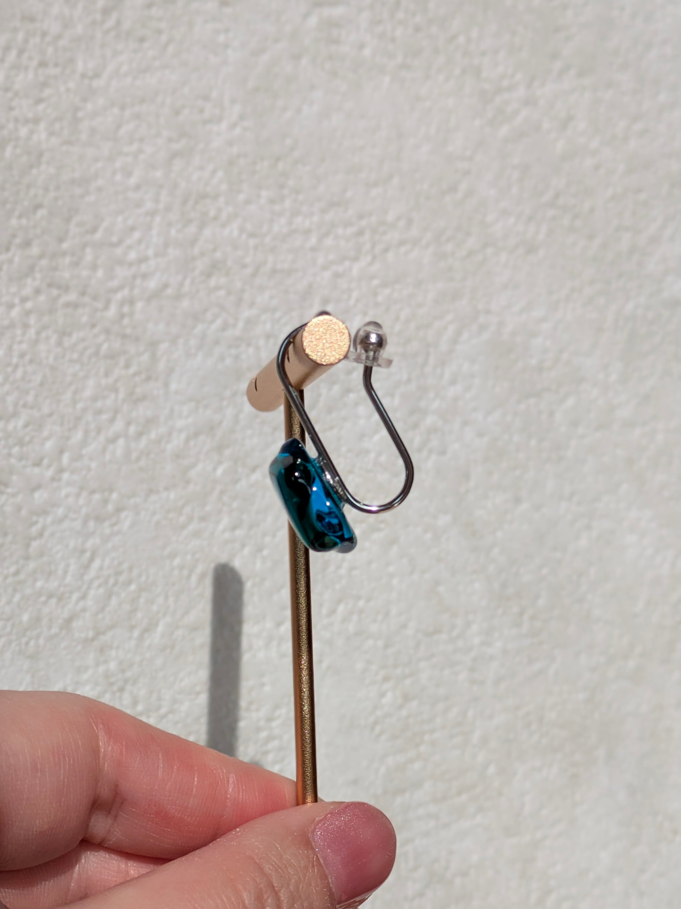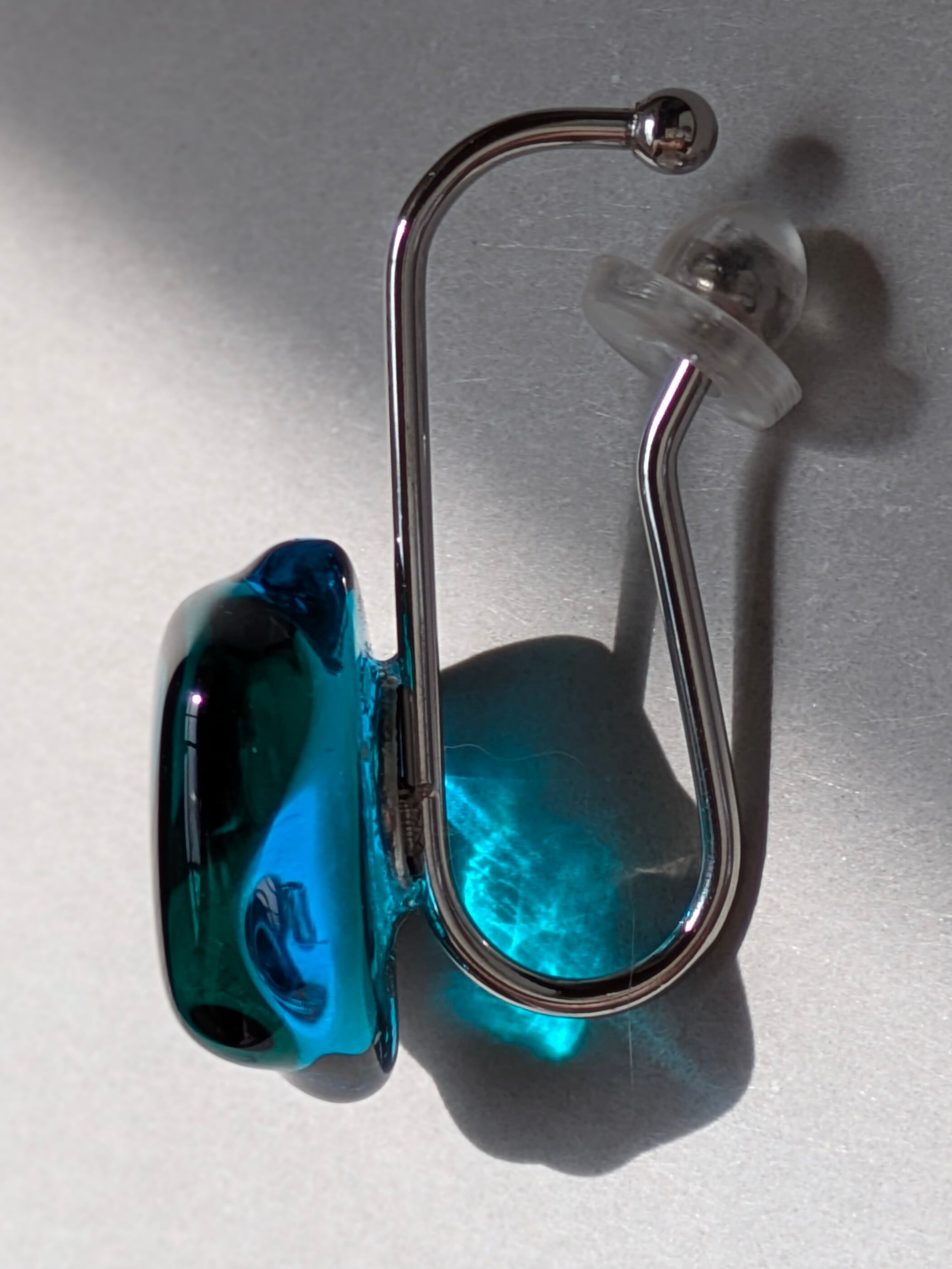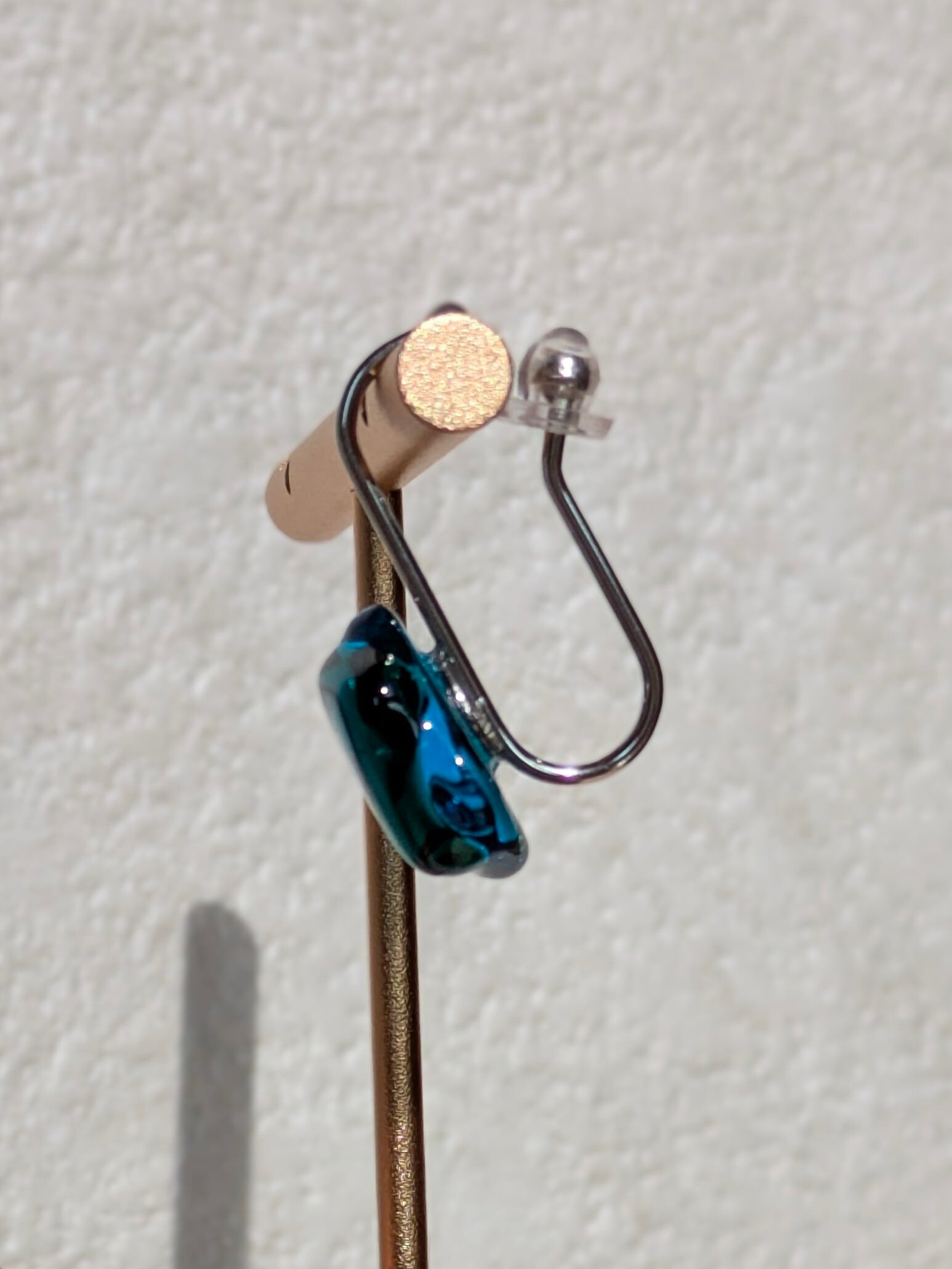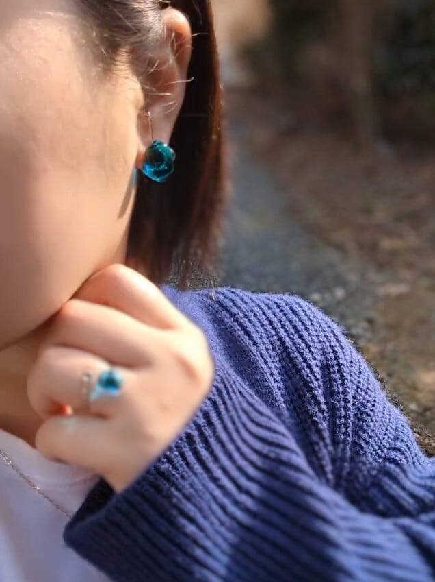 透明感あふれるアクアブルーと深みのあるエメラルドグリーンが融合した美しいイヤーカフは、光の角度によって色が変わります。