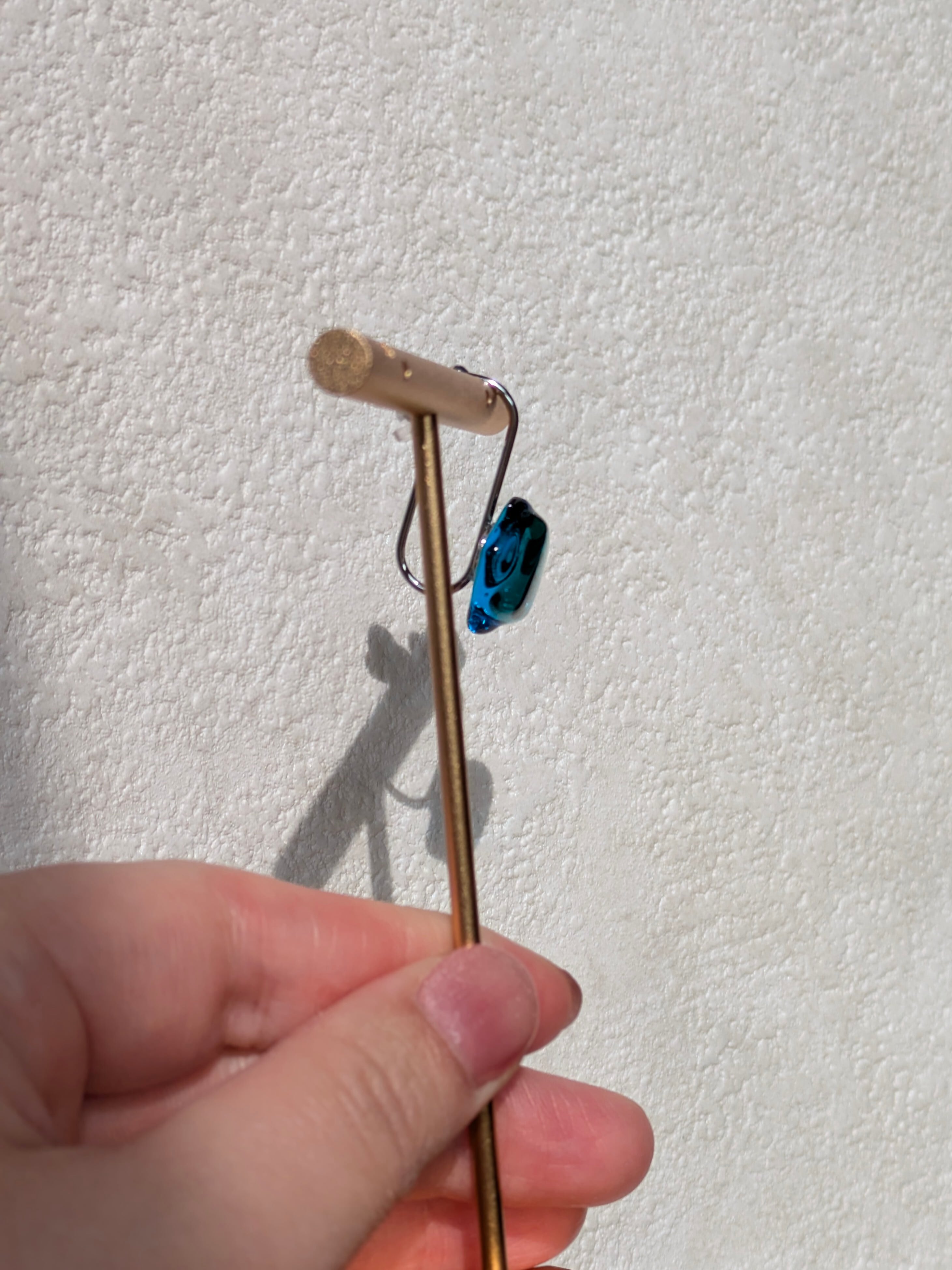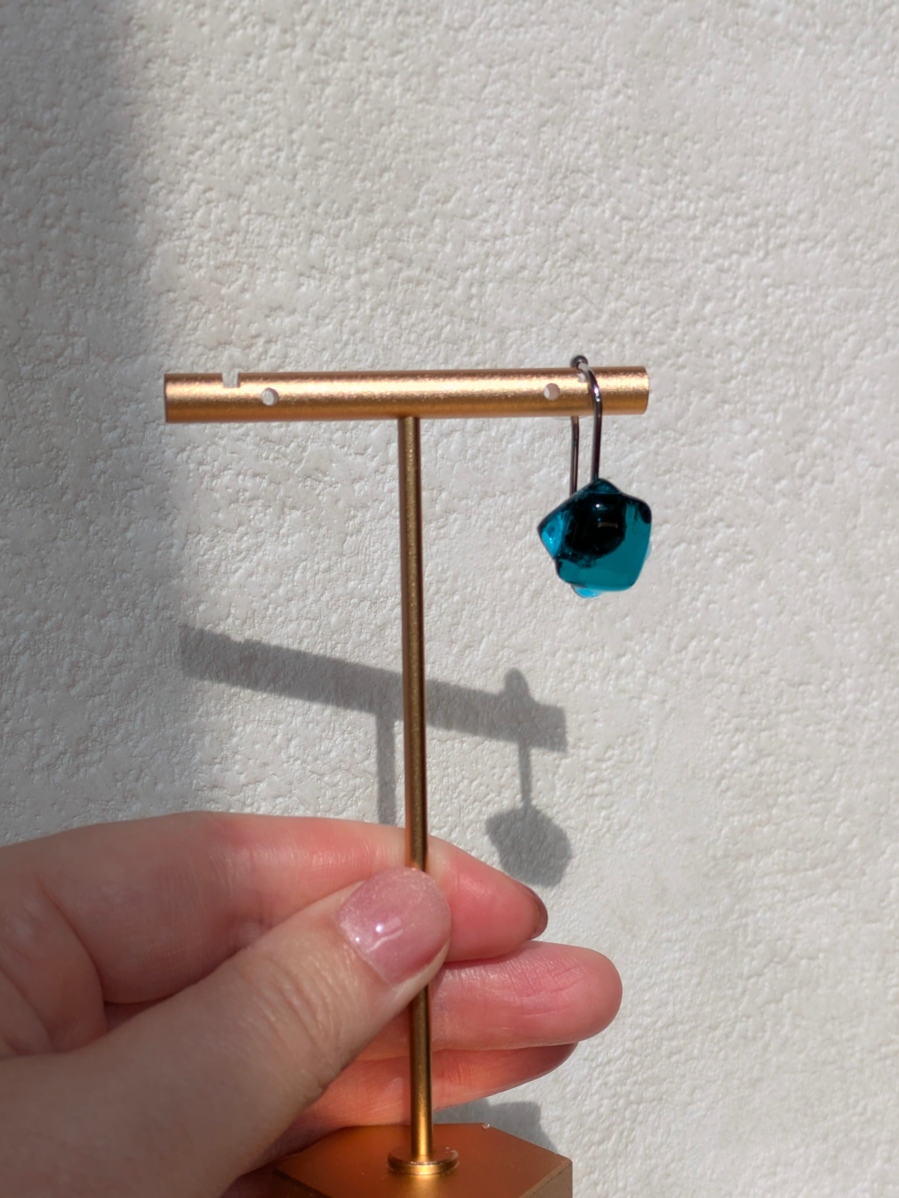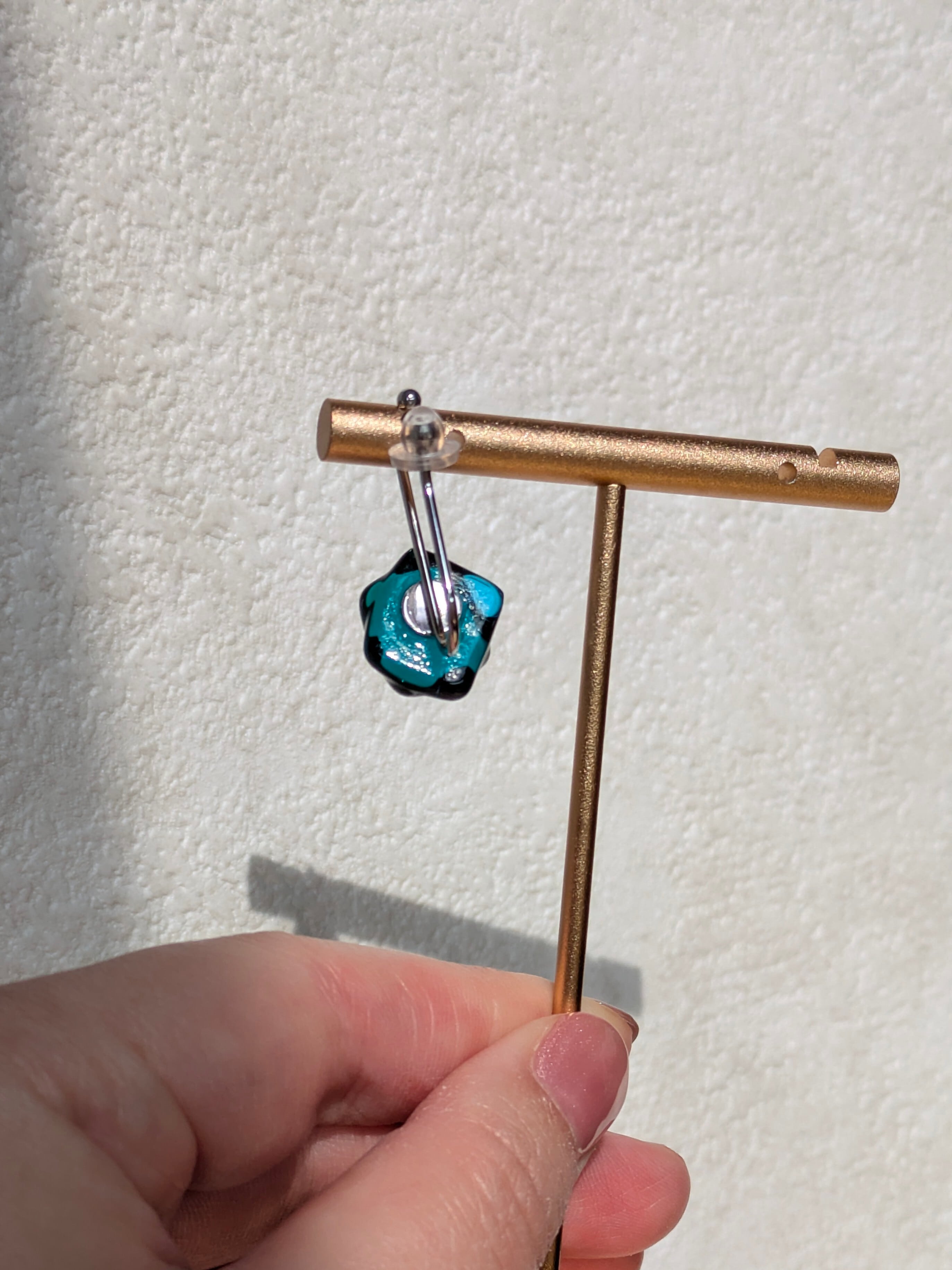 透明感あふれるアクアブルーと深みのあるエメラルドグリーンが融合した美しいイヤーカフは、光の角度によって色が変わります。