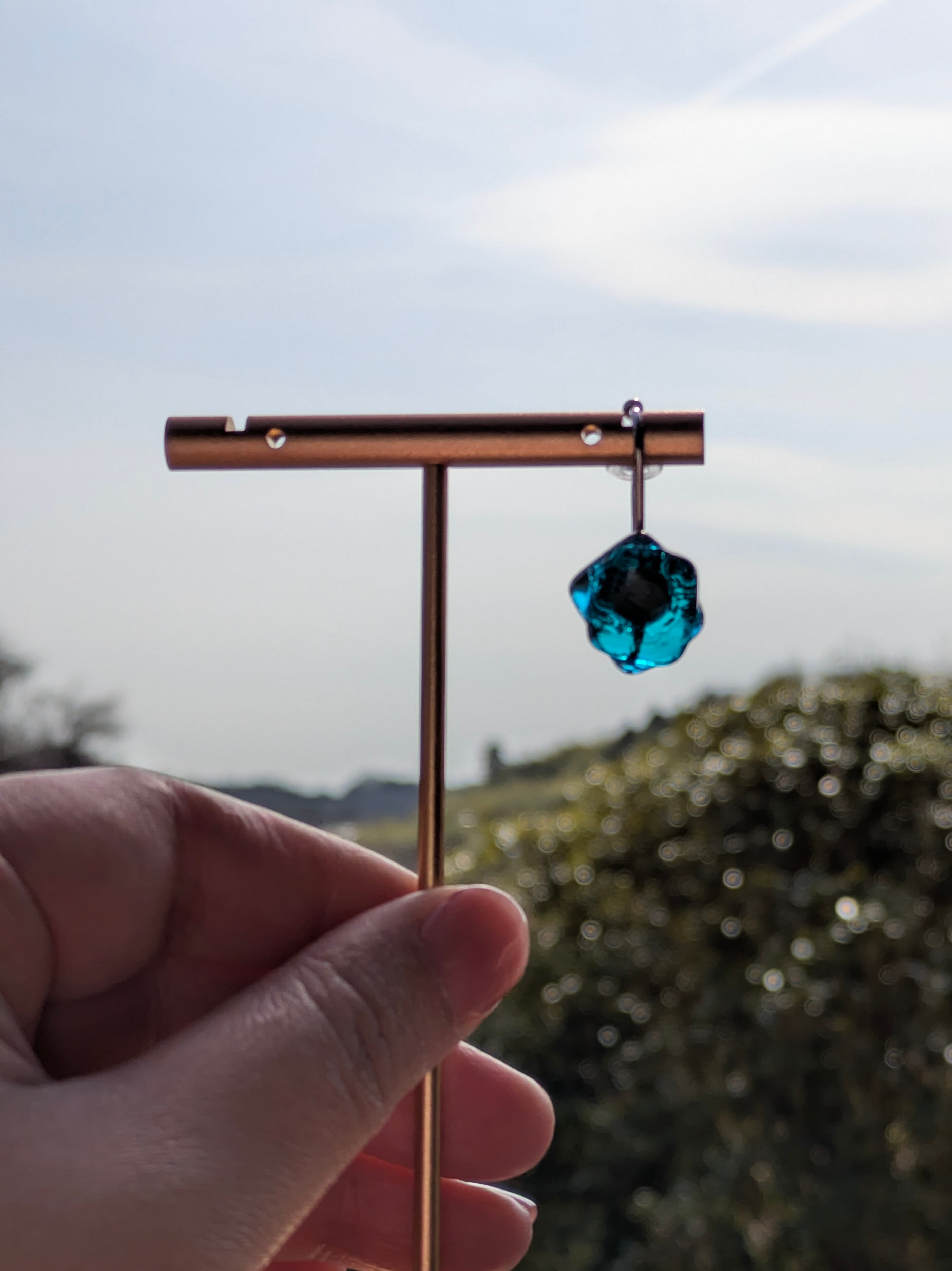 17森と空のあいだ|アクアブルー×エメラルドグリーンガラスのイヤーカフ