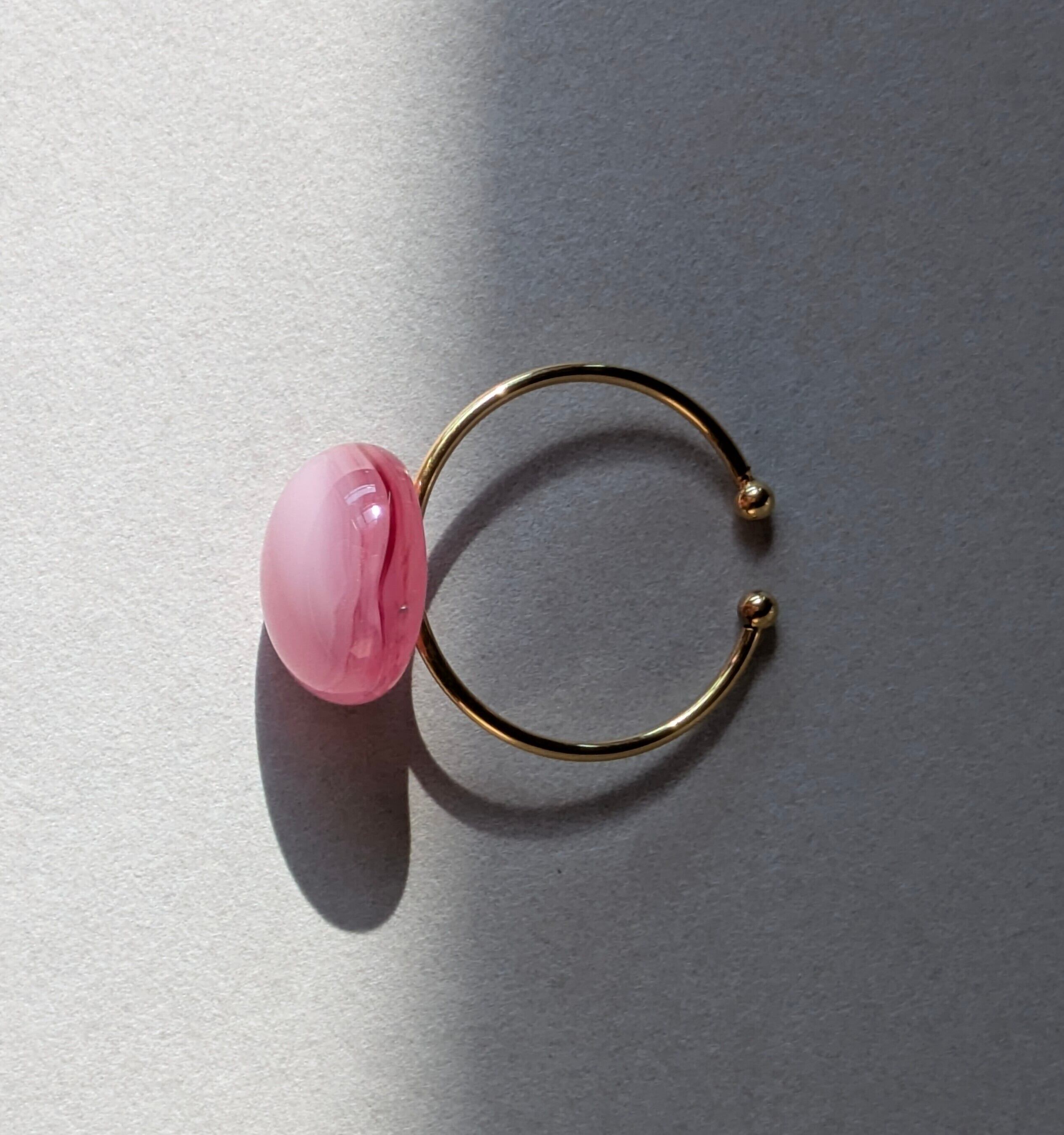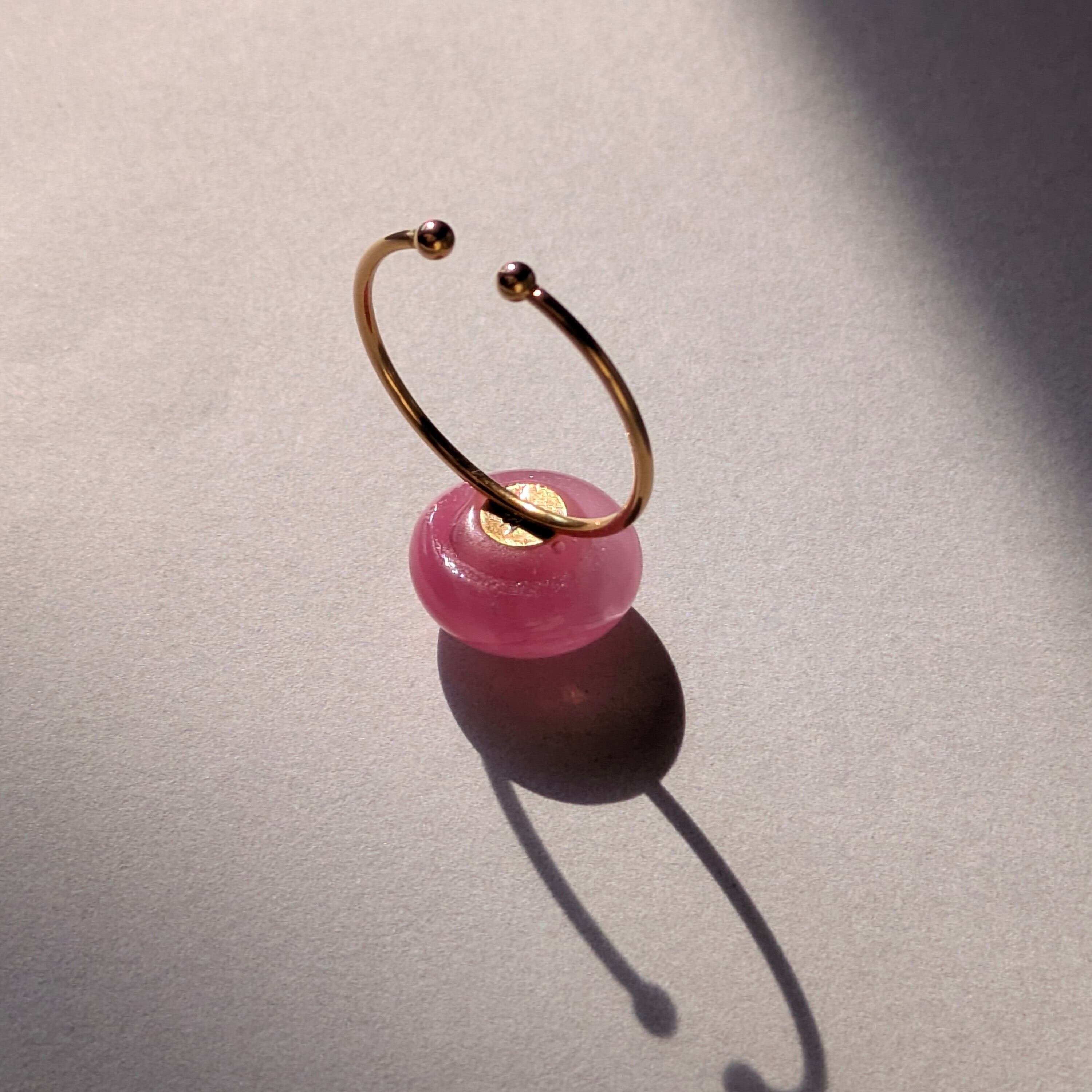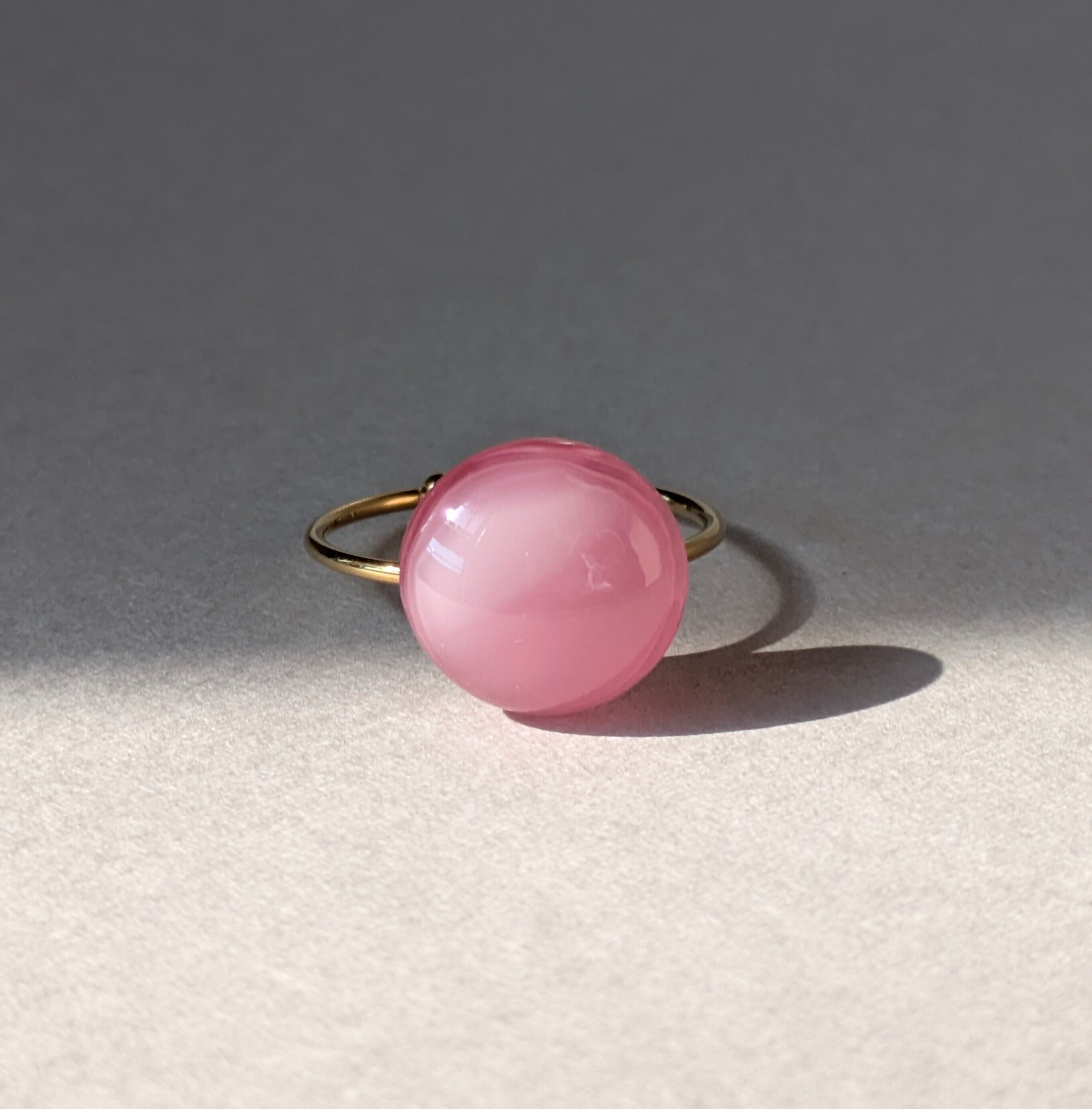 光に透ける桜色のガラスを楽しめるリング。