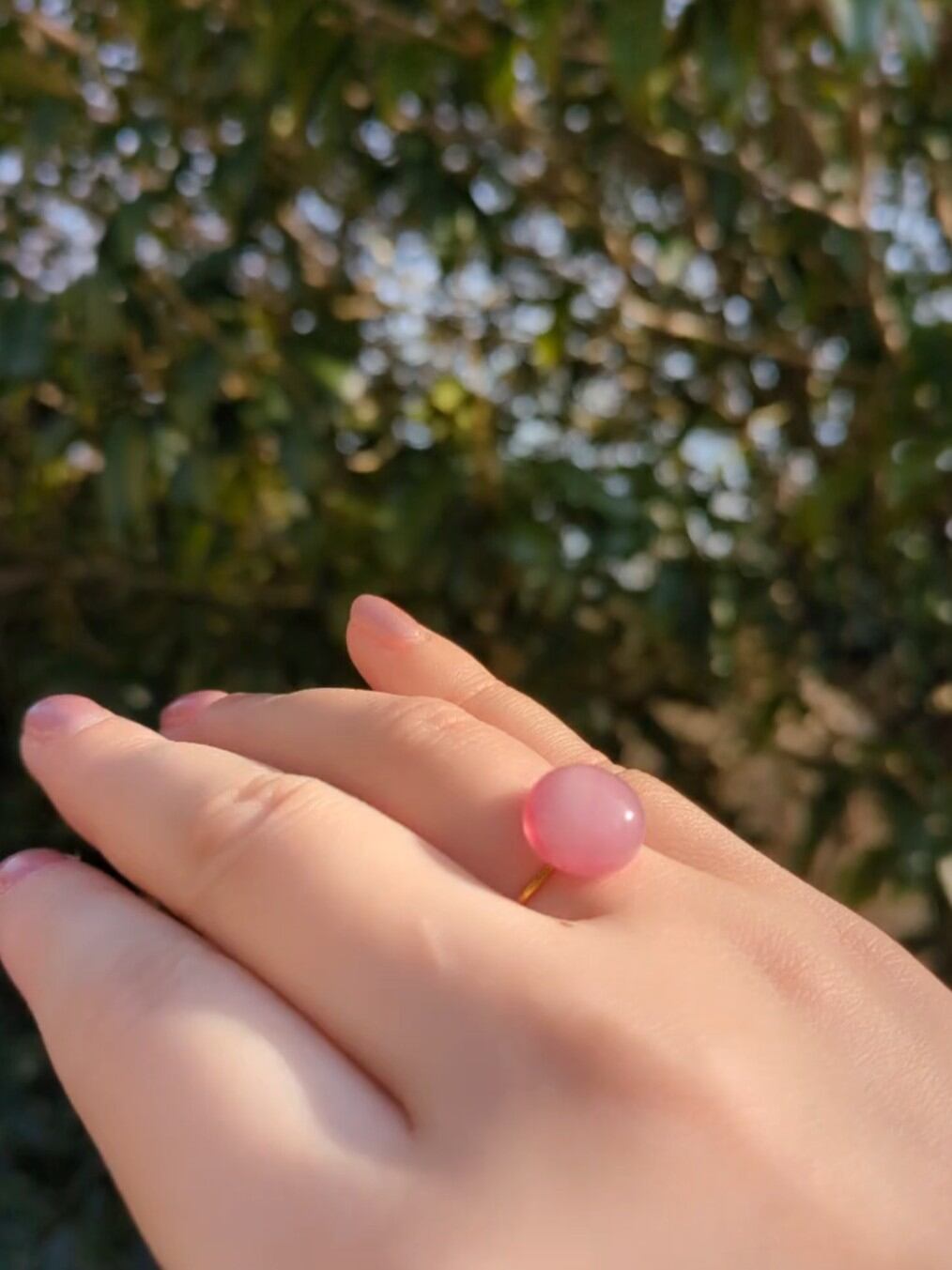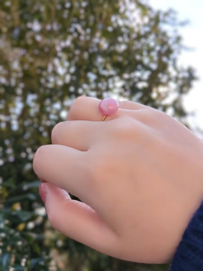 ⑨春ひとひら|ひだまり・ピンクガラスのリング