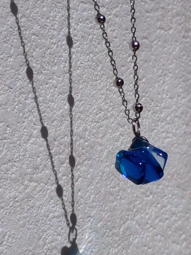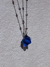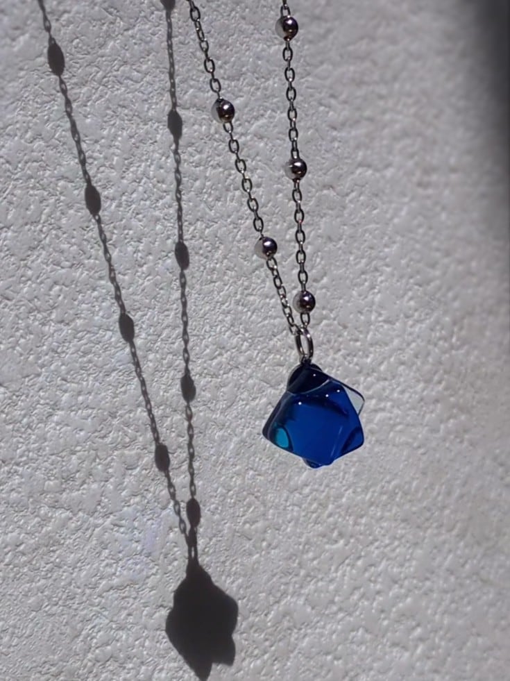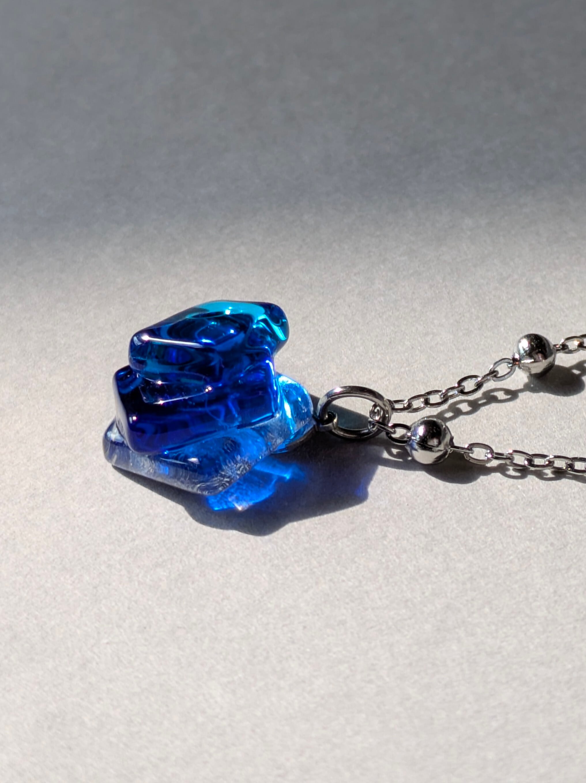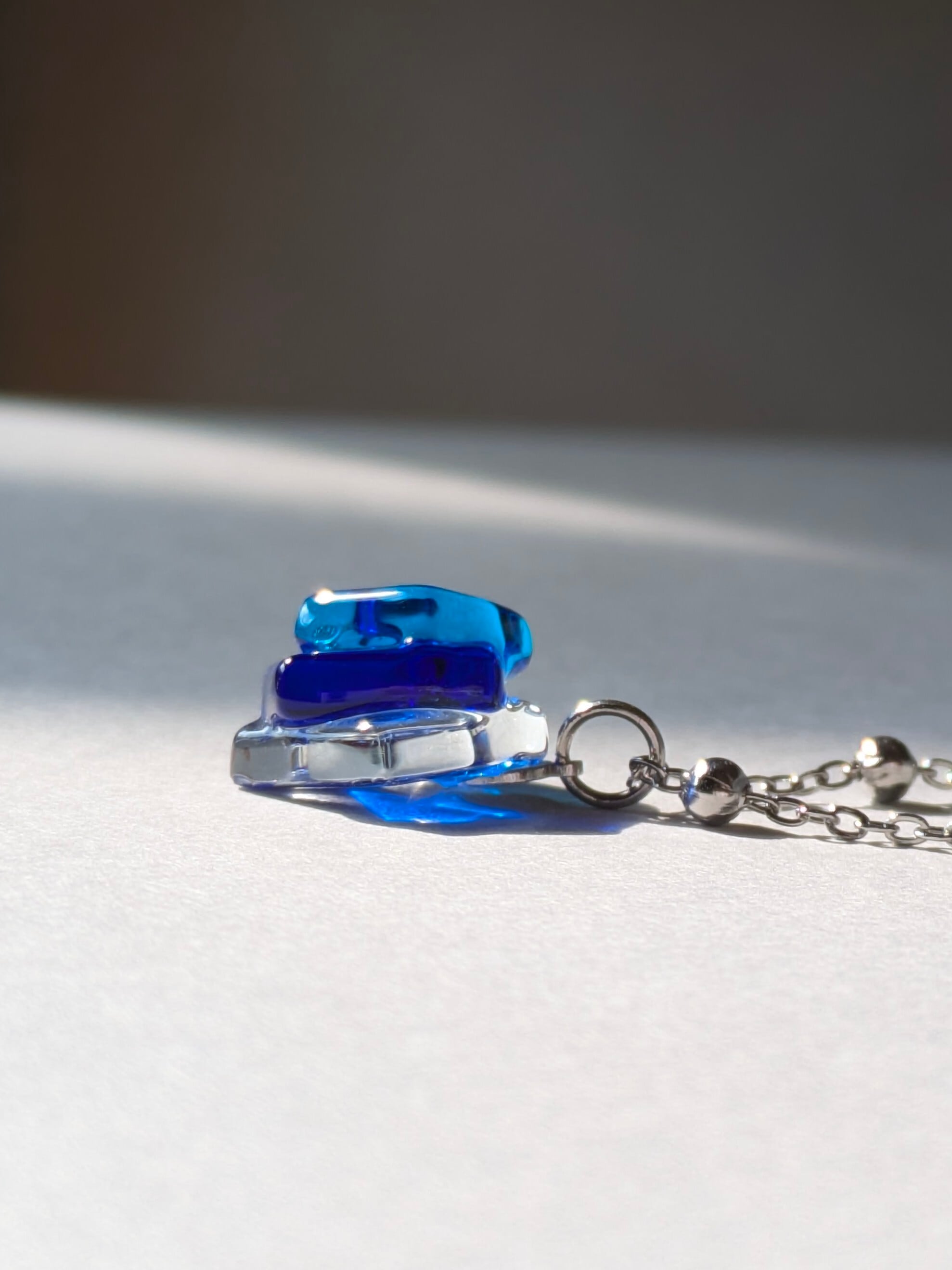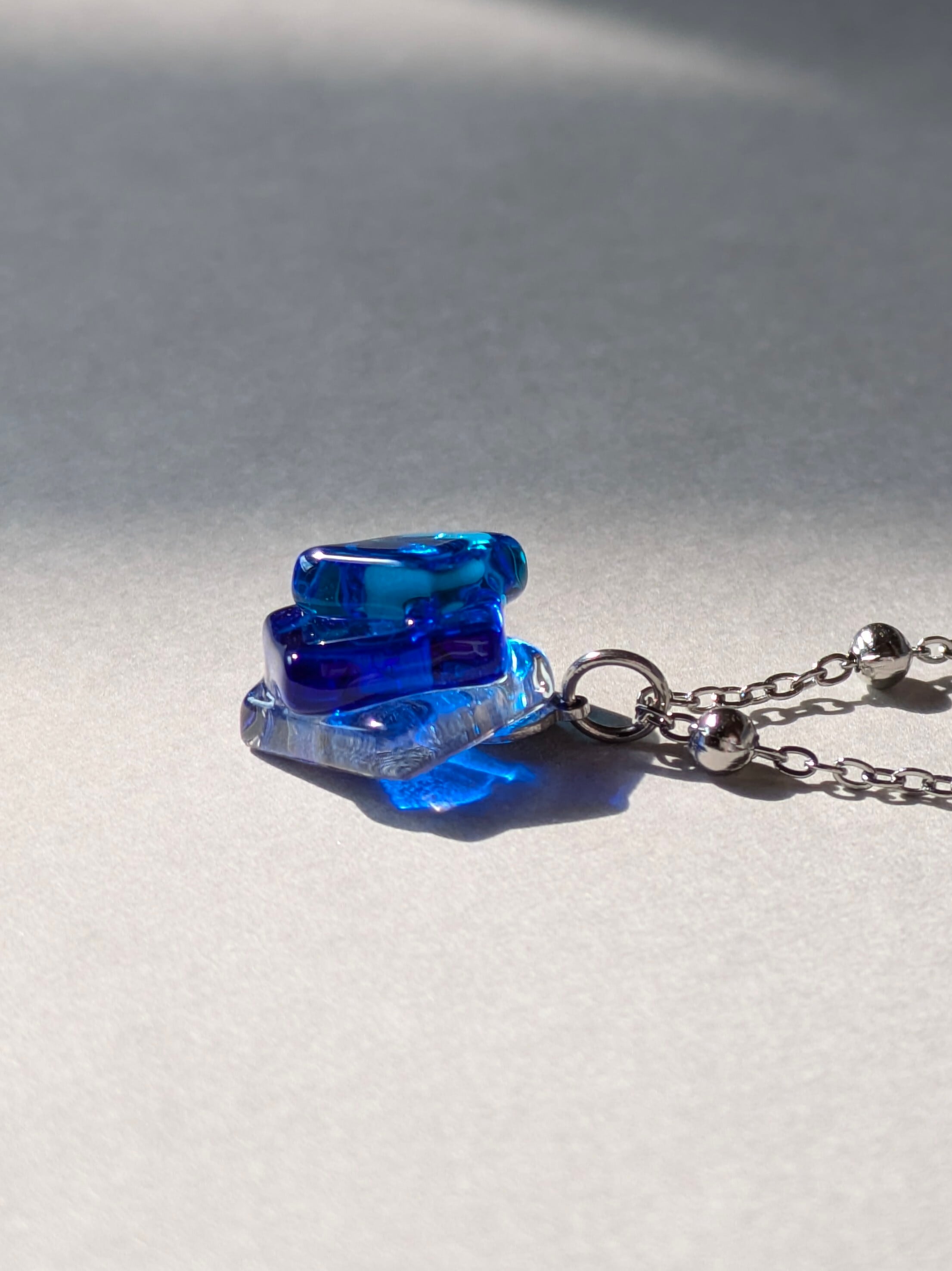 ③蒼の境界線|コバルトブルー×アクアブルー×クリアガラスのネックレス