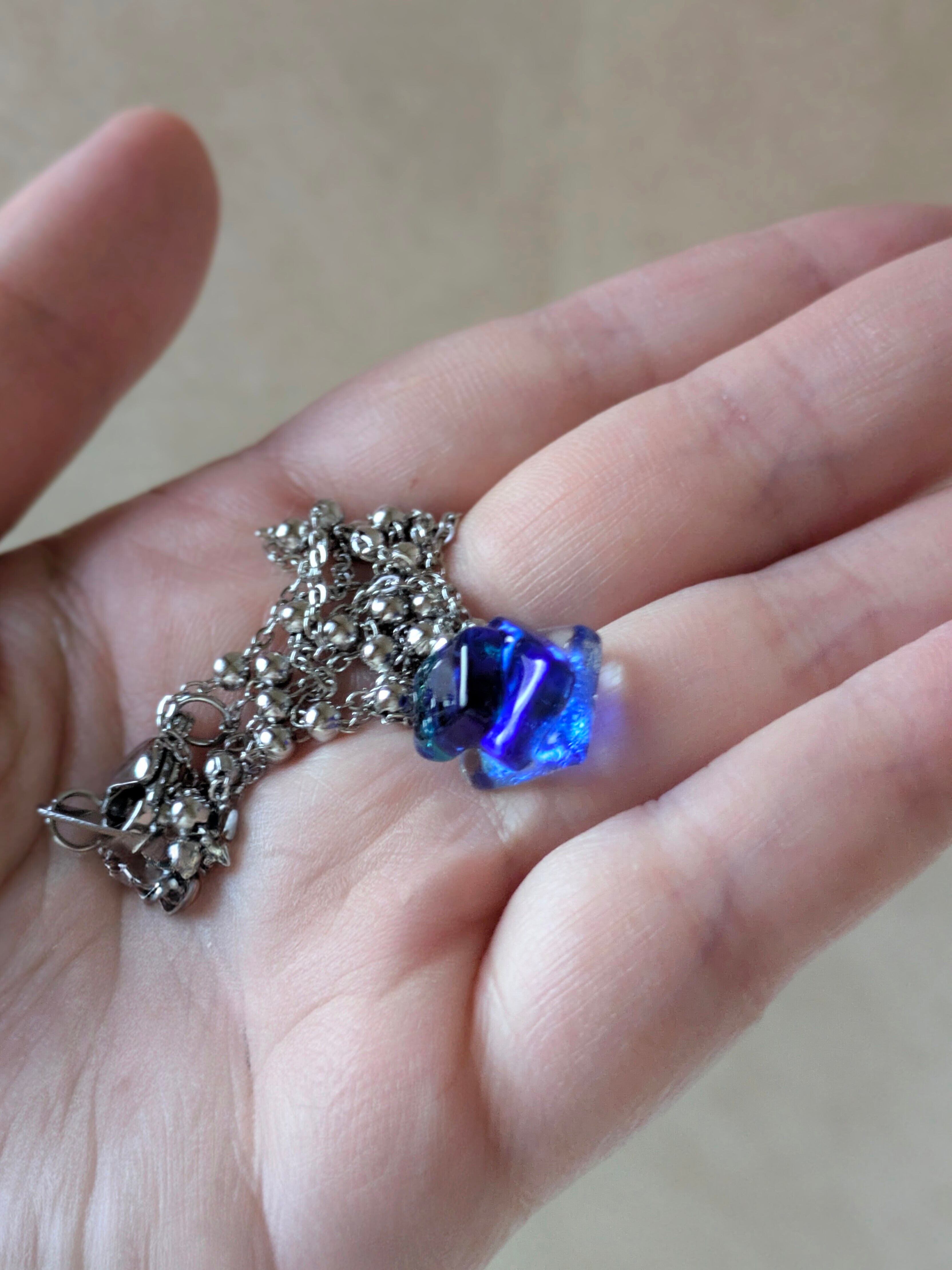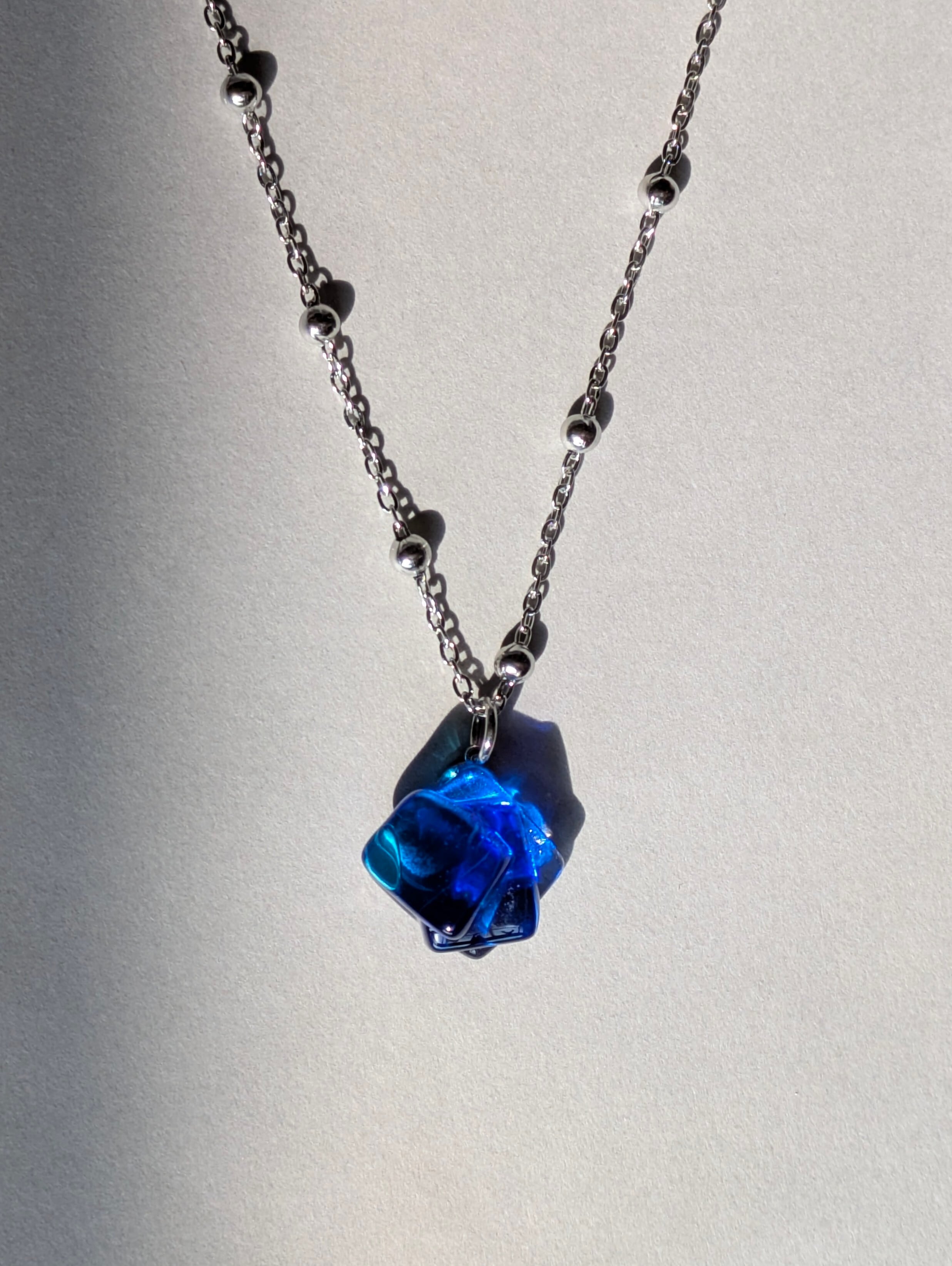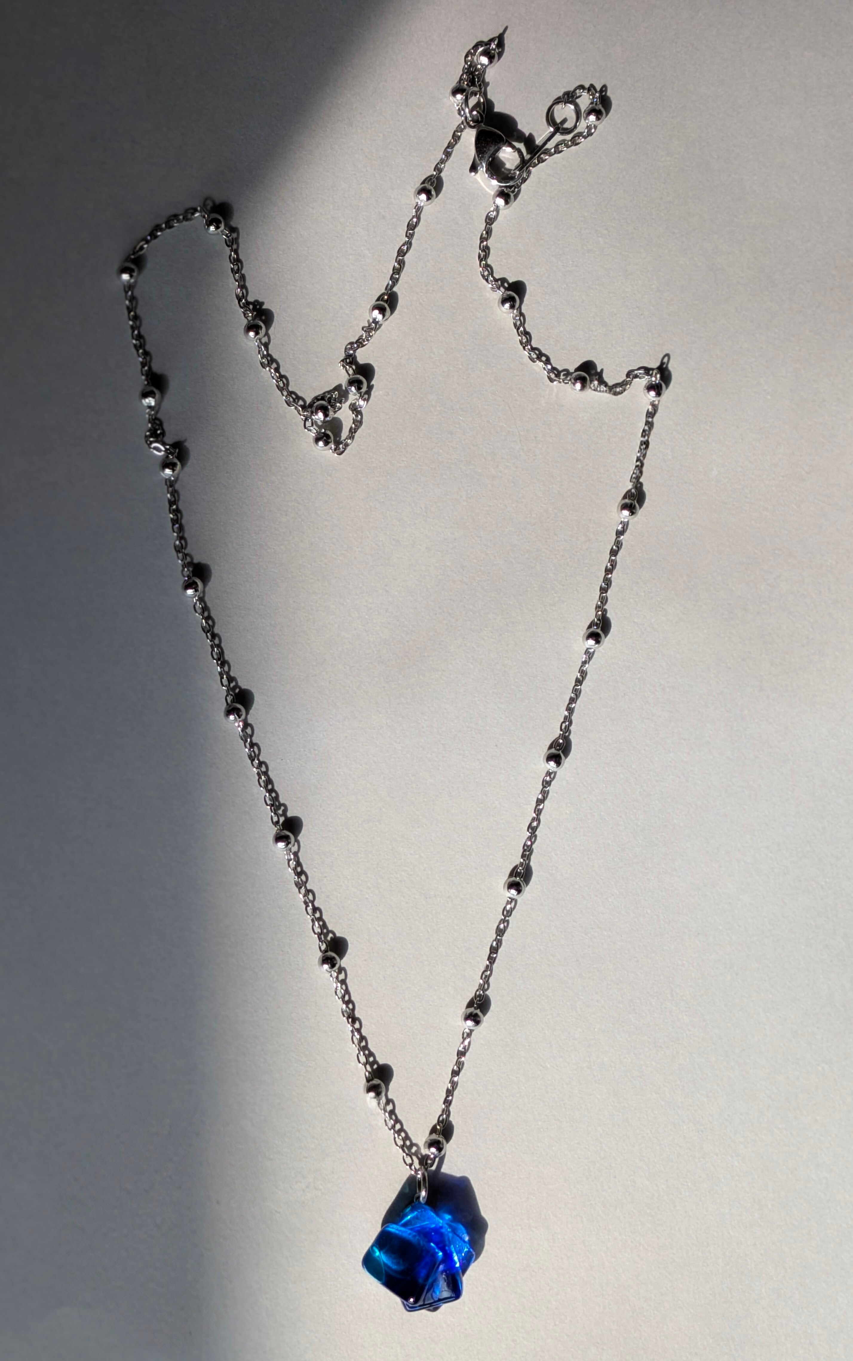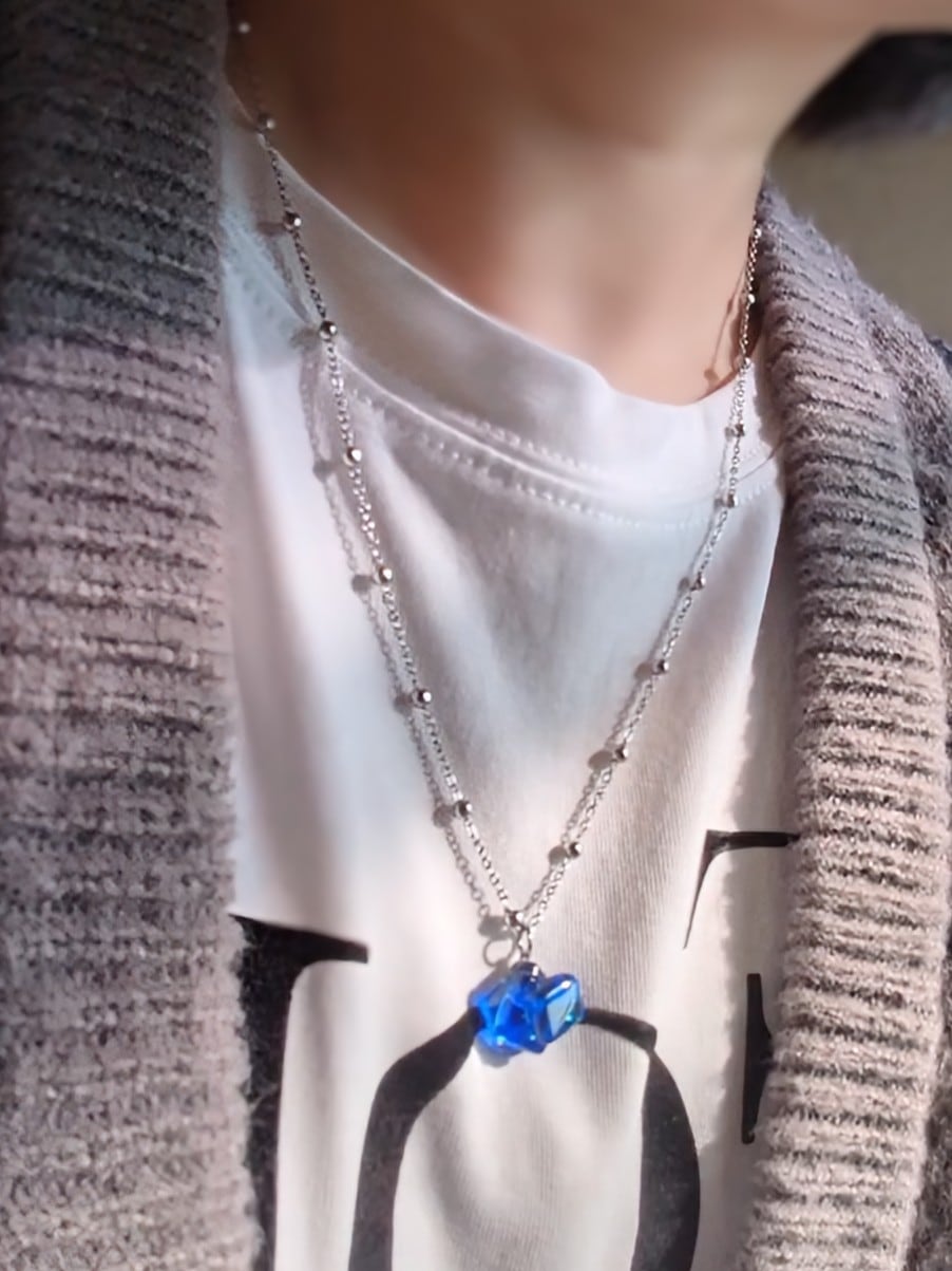 ③蒼の境界線|コバルトブルー×アクアブルー×クリアガラスのネックレス
