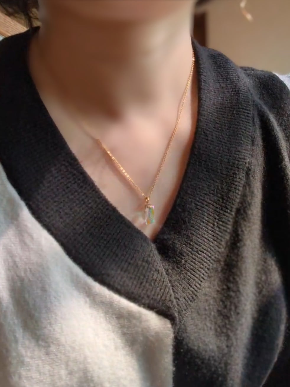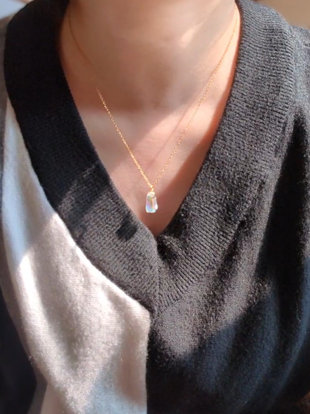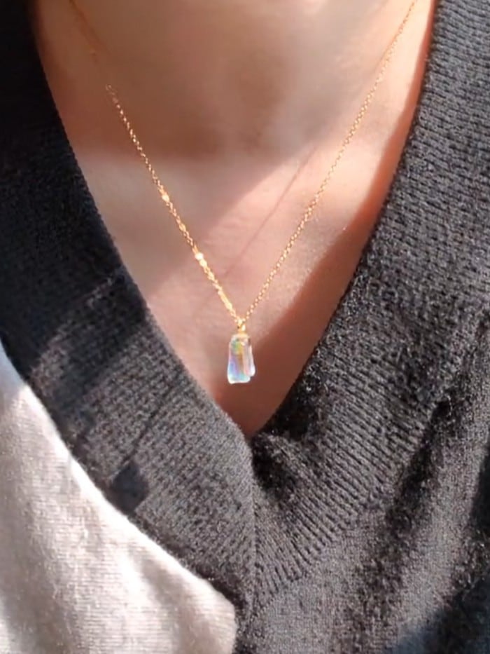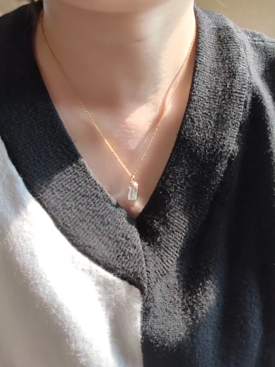 このネックレスは、光を眺めることで少しだけ気持ちが落ち着くように作りました。