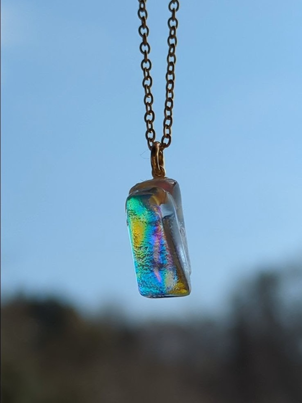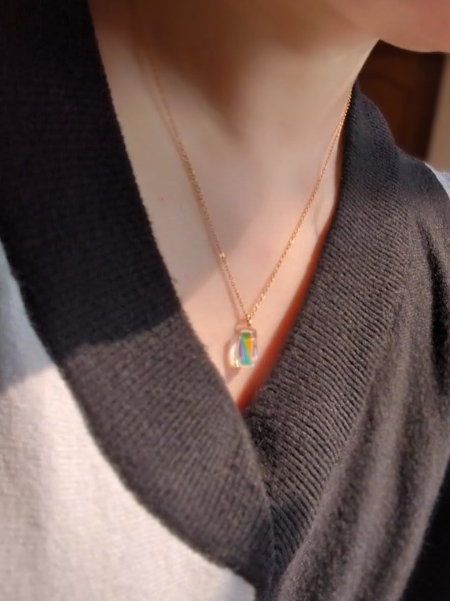 ①虹灯(にじび)|ダイクロ×クリアガラスのネックレス