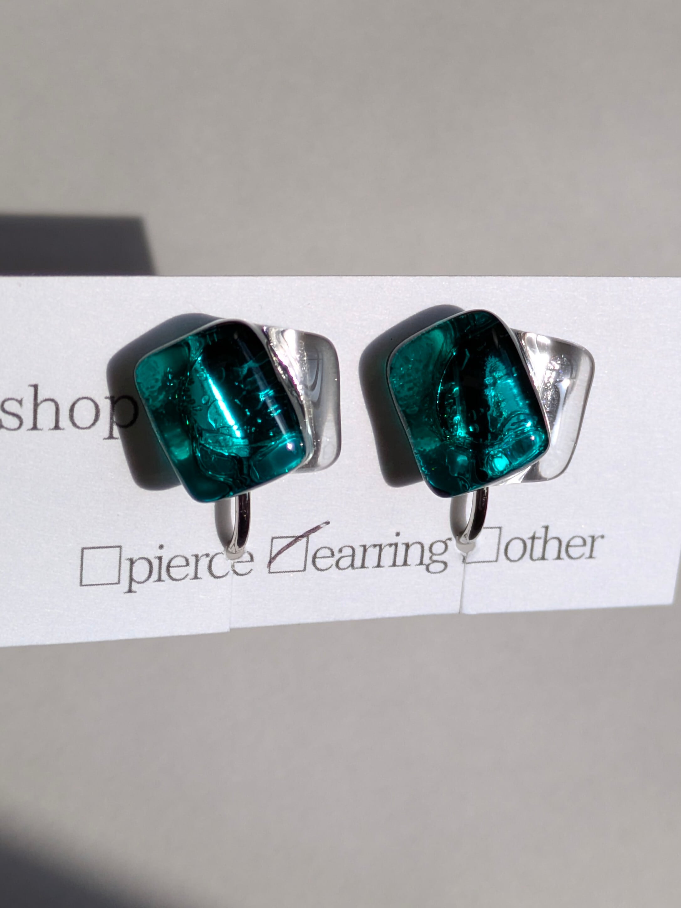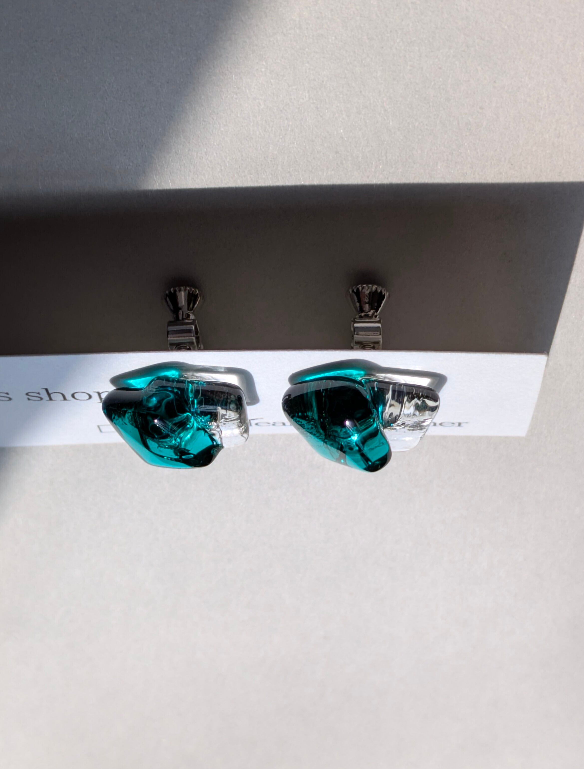 ふと目に入るたびに、深呼吸したくなるような、静かな安らぎを届けてくれるガラスイヤリングです。