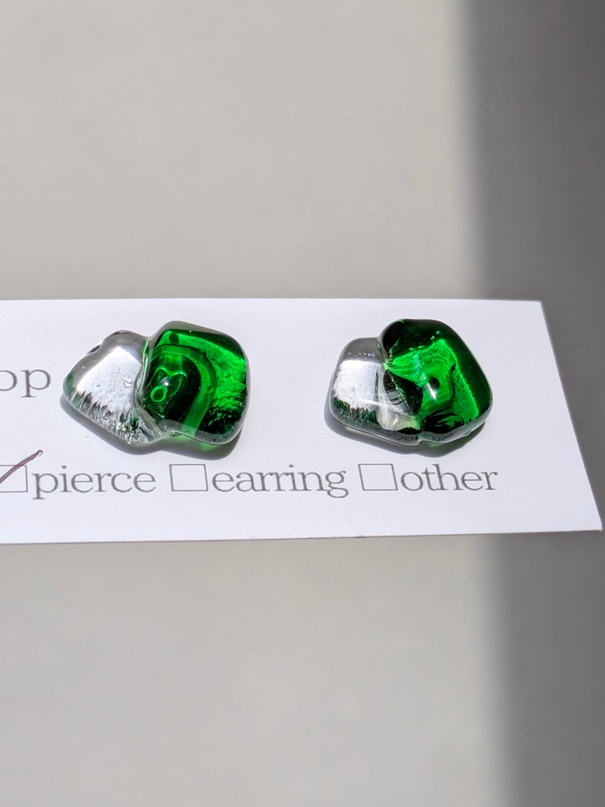 深緑の粒|静かな光のガラスピアス(光の粒シリーズ)〈常設〉